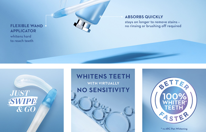 • Better. Faster. 100% Whiter* Teeth. Virtually No Sensitivity. *vs ARC pen whitening