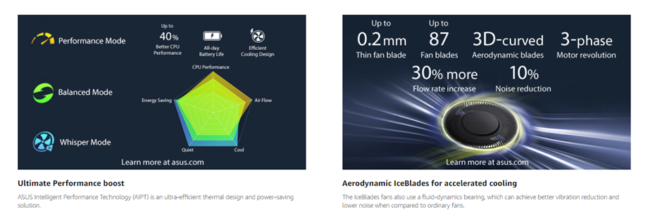 • ASUS AI Noise-Canceling Technology employs machine learning to isolate unwanted noise from human speech, which ensures the best communications experience