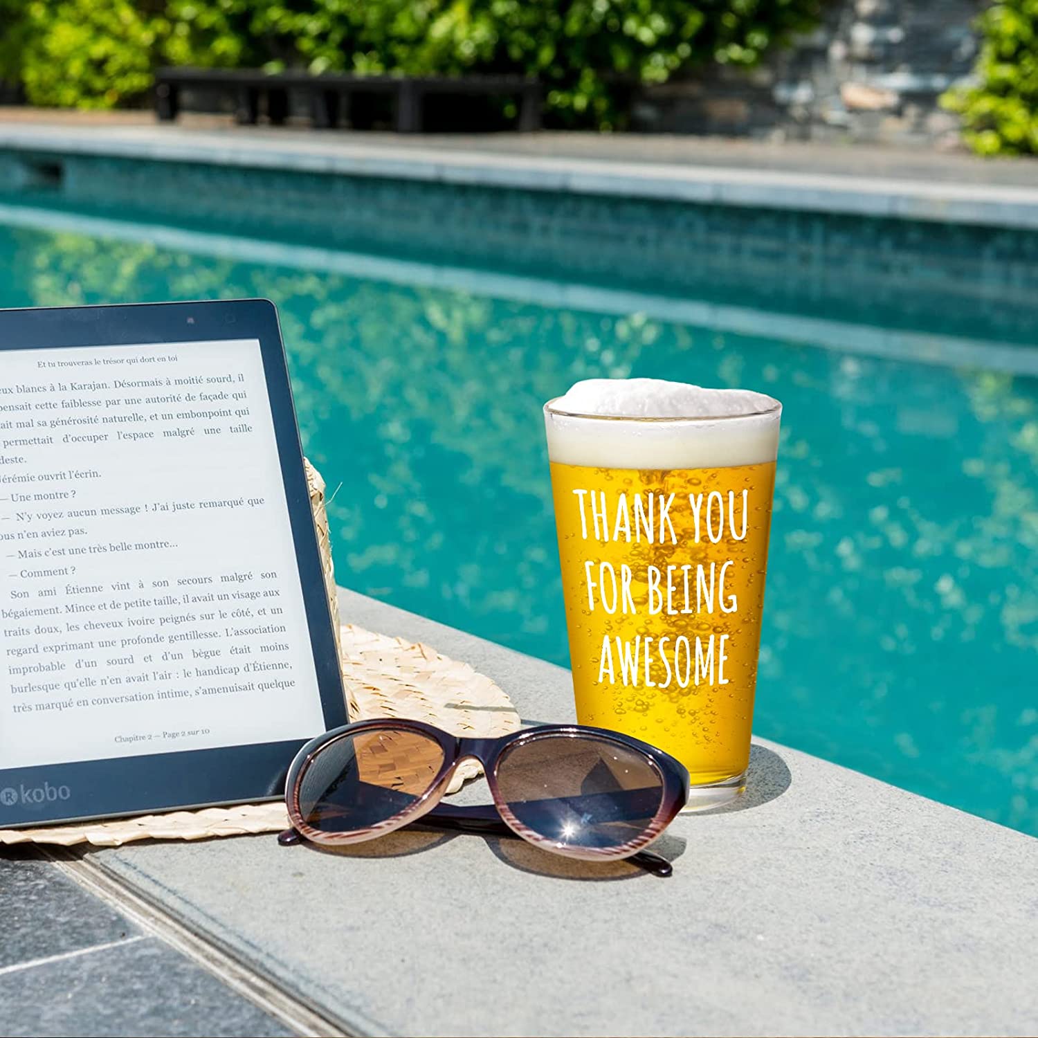 Modwnfy Thank You for Being Awesome Beer Glass, Funny Thank You Gifts for Christmas, Birthday Boss Day Congratulation Graduation, Inspirational Gifts Beer Pint Glass for Dad Boss Coworker, 15 oz