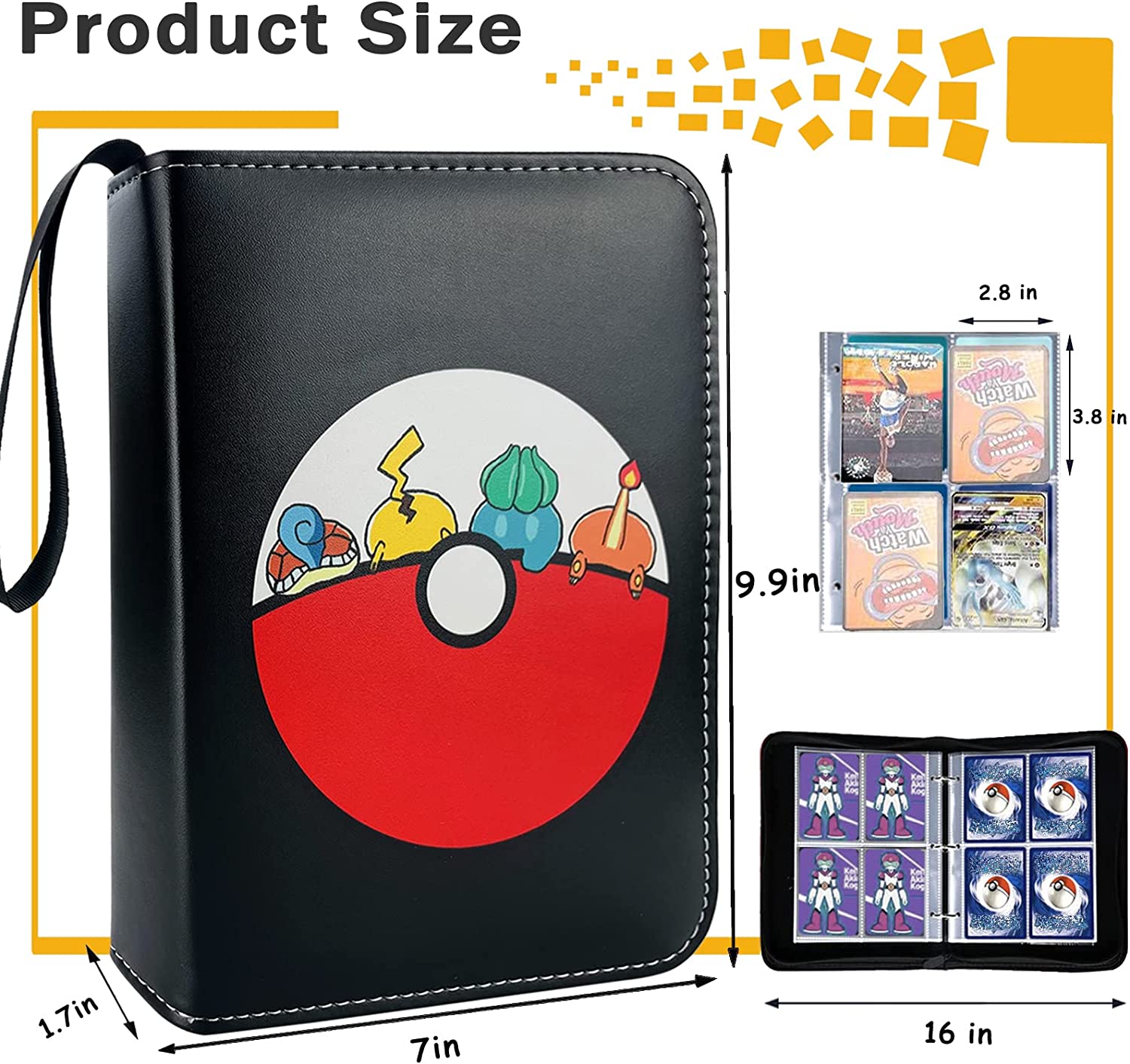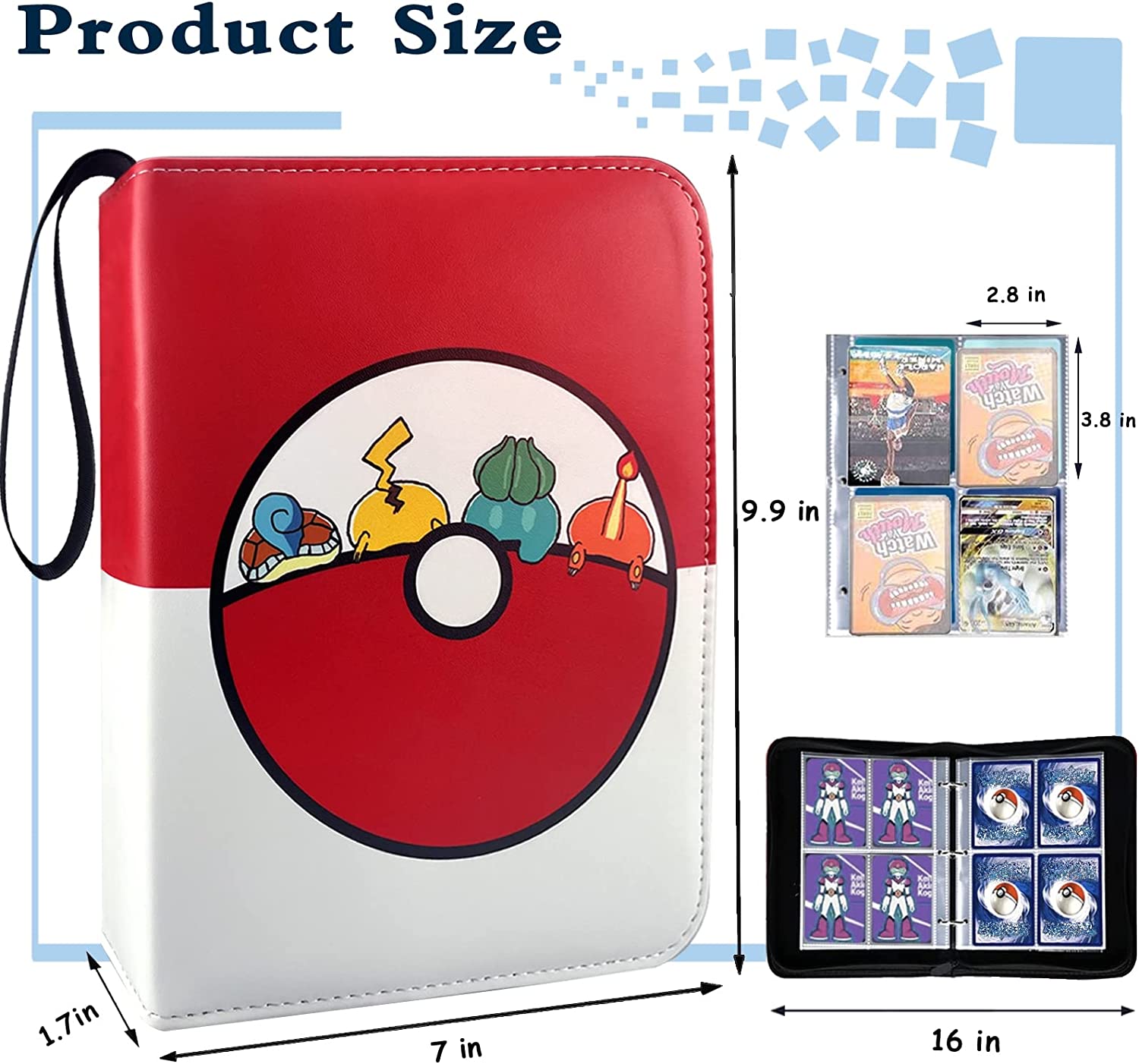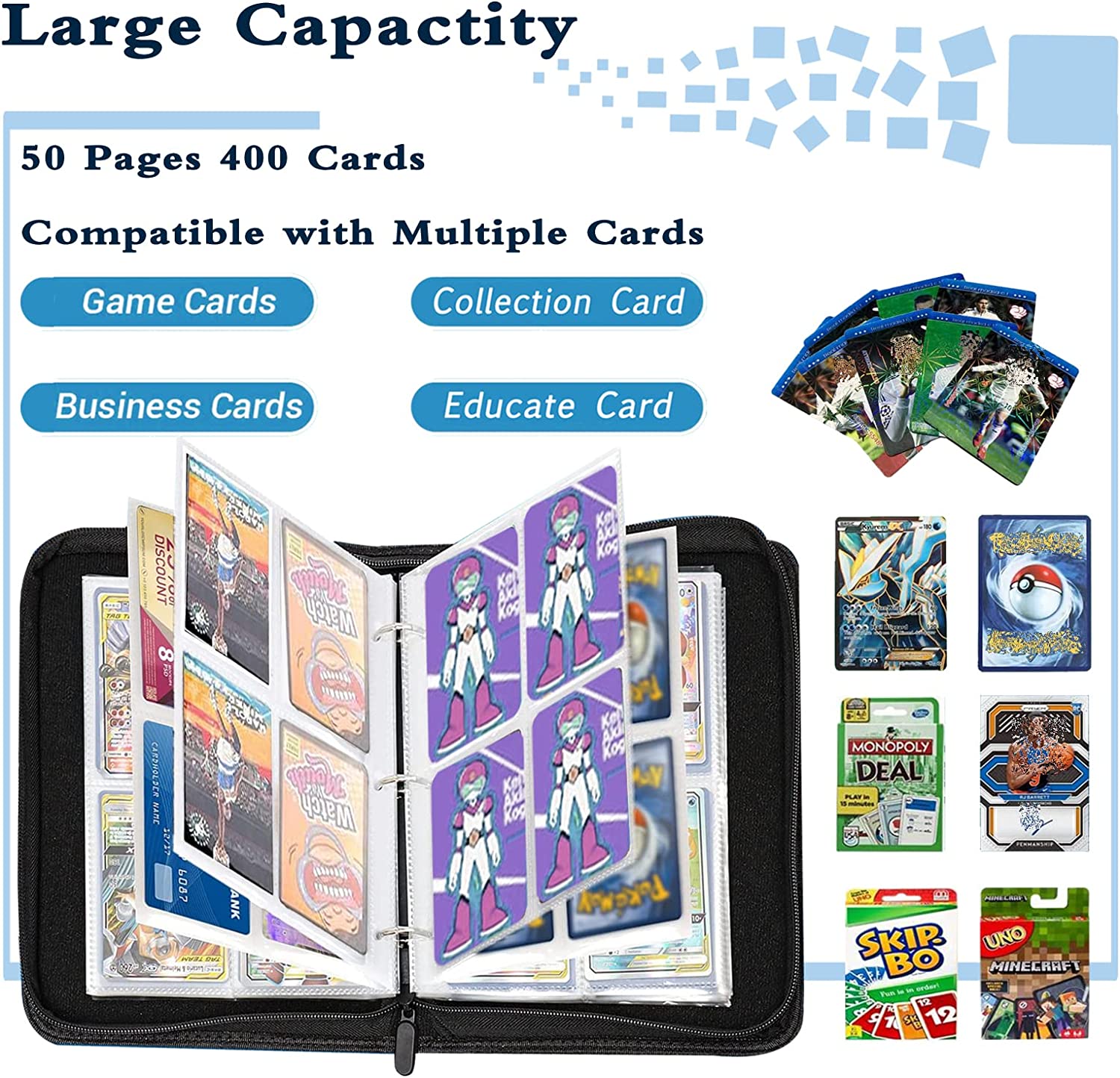 Trading Card Binder, Card Holder 4 Pocket 50 Removable Sleeves 400 Cards Zipper Binder, Card Collection Binder Album Folder, Toy Gifts for Boys Girls
