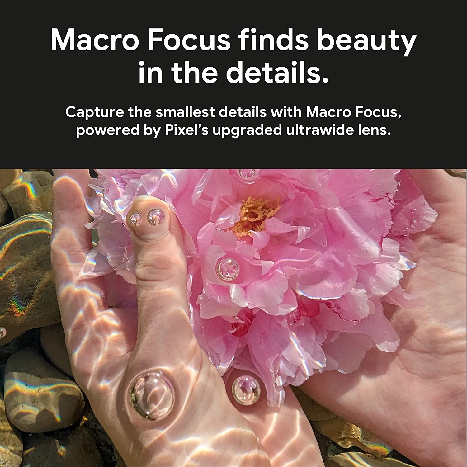 • Google Pixel 7 Pro has a 5x telephoto lens with 30x Super Res Zoom[5]; the upgraded ultrawide lens powers Macro Focus to capture the smallest details