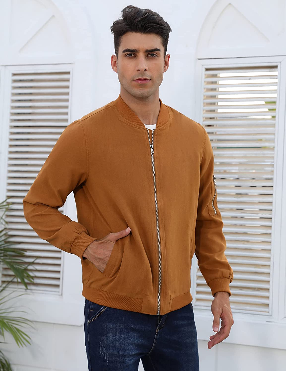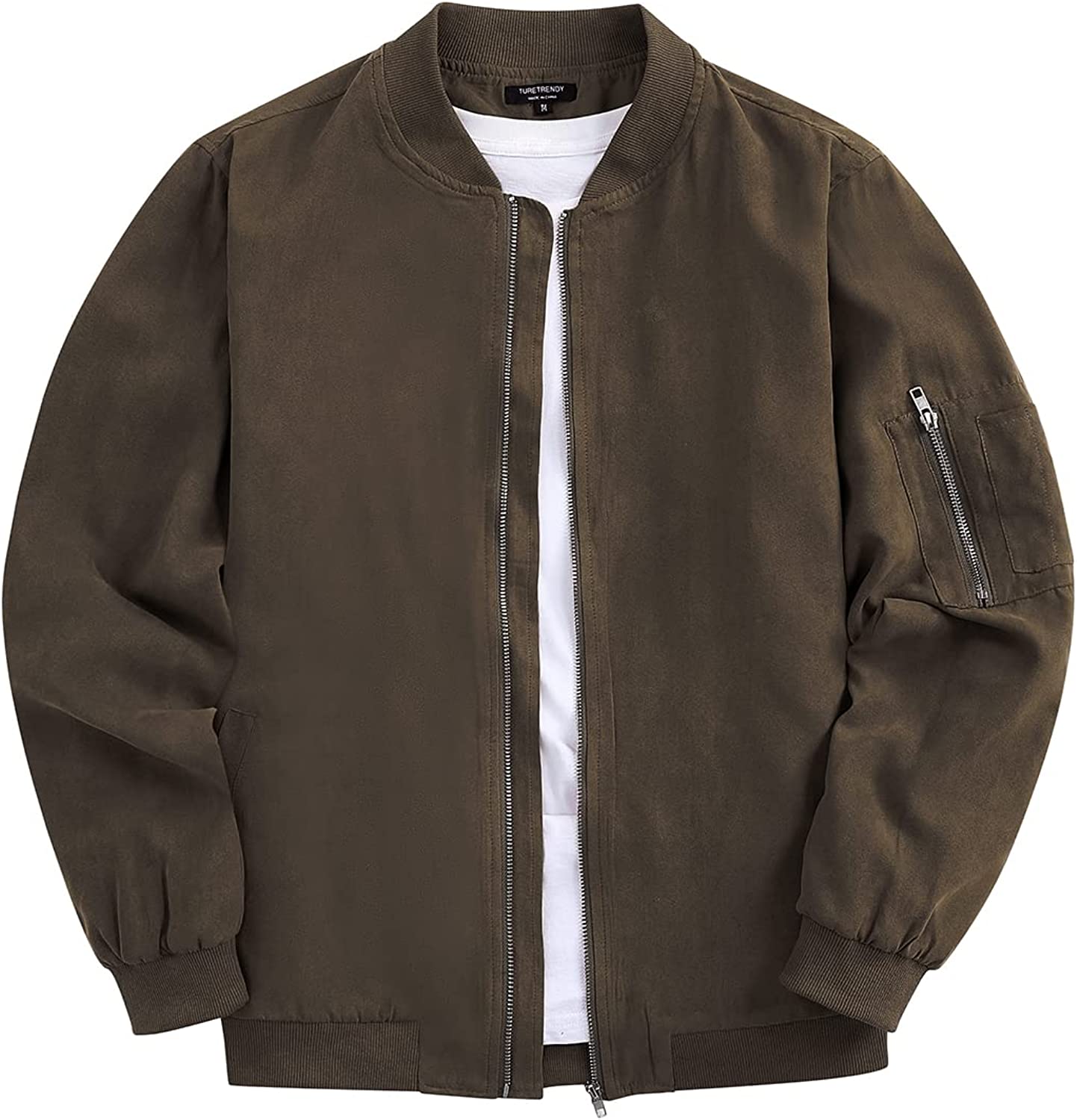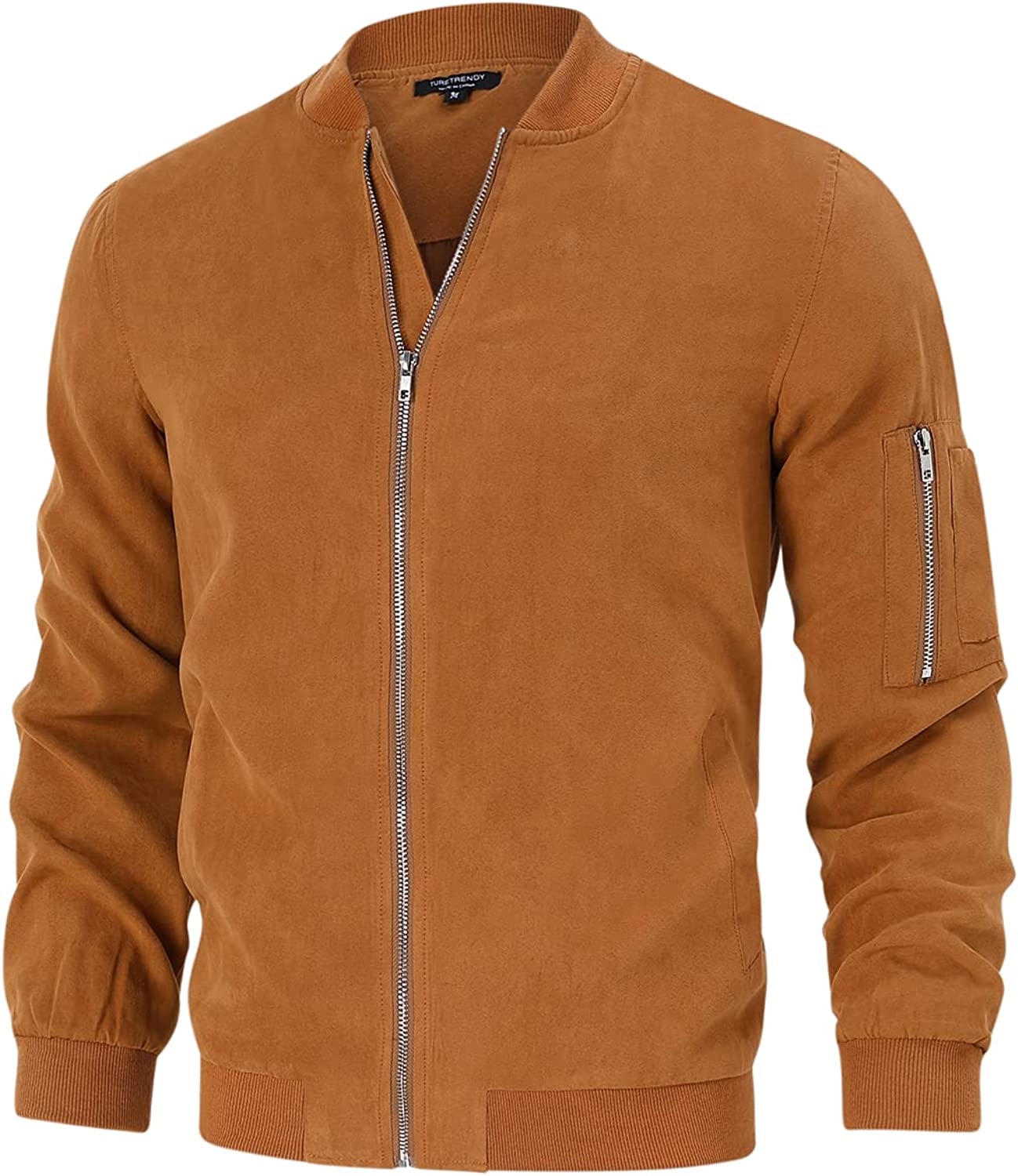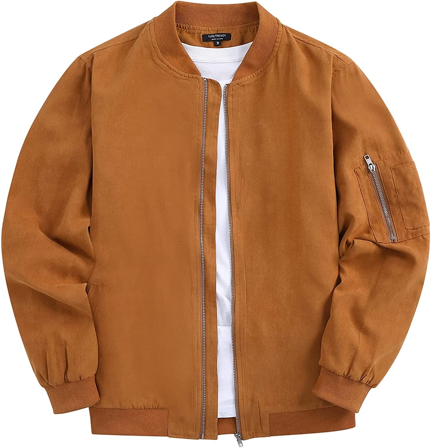 TURETRENDY Men's Suede Bomber Varsity Leather Jackets Lightweight Softshell Flight Full Zip Casual Coat