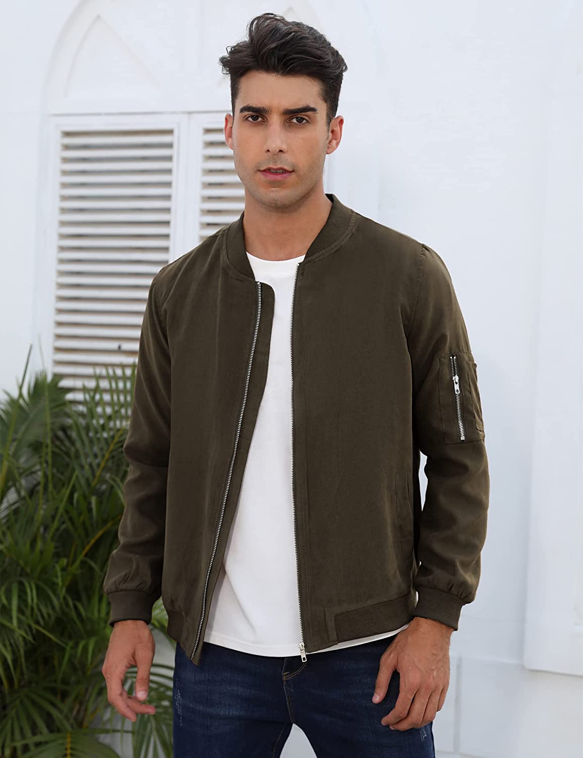 • Design: Bomber jacket with ribbed knit stand-up collar;classic rib knit hem and cuffs,full length metal zip closure,Front Zip-Up On The Left Side,Fully Lined Provides Soft-Wearing Comforts