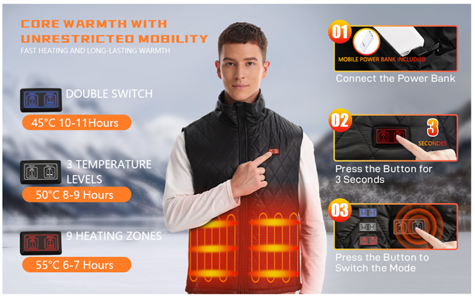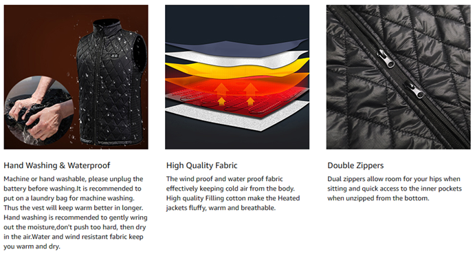 • Customer Service -Please check the size chart before purchasing, if you don't know what to choose, please contact us via email. Any questions with our heated vests , please feel free to contact us via email, we will do our best to help you solve the problem in 24 hours.