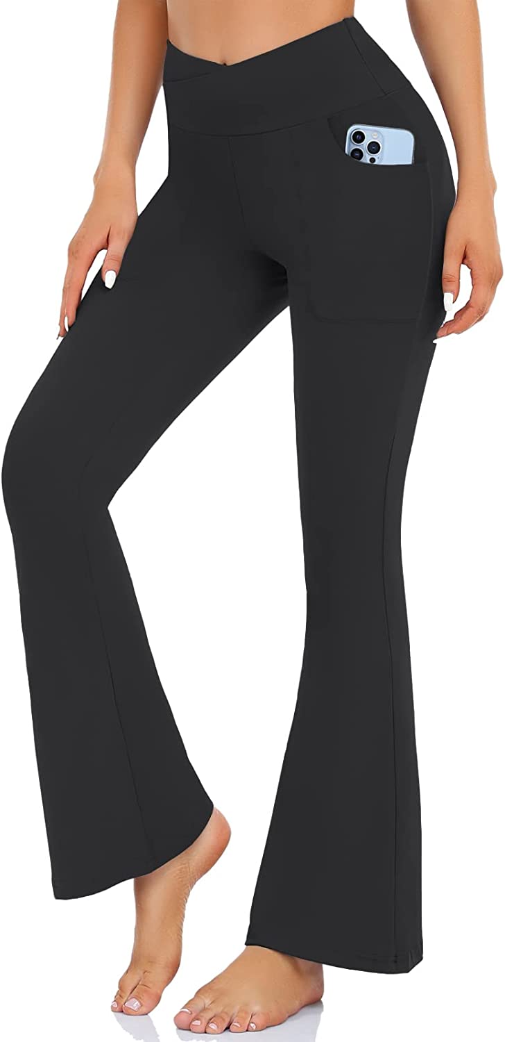 Super Flare&Crossover Design: Flare Leg allow you to move without restriction, effectively helps hide the defects of the calf, and creates the contour and slender appearance of the popular line.The 4.5" wide elastic waistband and a v-seam design which perfectly reveals the navel,trim the waist line and visually elongate the waist ratio.Suitable for ladies of all body types.