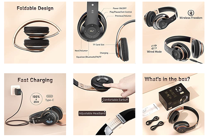 - ?【40 Hours Long Playtime with 6 EQ Modes】: Our Bluetooth Headphones have 6 EQ modes with which you can freely switch between Bass/Jazz/Voice/Rock/Pop/Classic sounds, each mode provides you with the CD quality sound. 500mAh battery, 40 hours of playtime, 2.5 hours Fast Charing. You can switch to wired mode and enjoy your music Non-stop. Headphones are Rechargeable. Come with a 3.5mm audio cable, regardless of whether you want to use wireless headset or wired headphones, Bluetooth headset can satisfy you.
