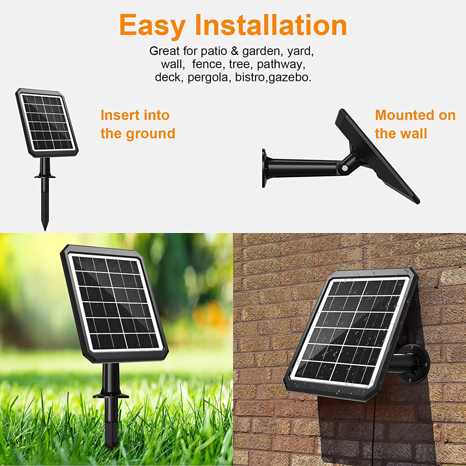 • ?【 EASY INSTALLATION 】The solar outdoor string lights has 15pcs E26 sockets. The distance between each edison bulbs is 3ft. Each socket equipped with a hanging hook on the top, making it easy for hanging with hooks, guide wires, zip ties, pole etc. The included detachable solar panel has a mounting brackets plus a durable ground stake for ground application makes it super easy to install it to patio & garden, yard, porch, deck, wall, fence, tree, bistro, pergola, gazebo or any where you want.