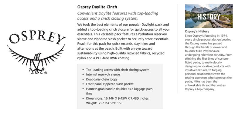 Lightweight, simple, durable and comfortable, the Daylite® is well-loved for a reason. Reach for it when running everyday errands, going for a quick hike or heading out of town. Constructed from high-quality bluesign® approved recycled fabrics, GRS-certified recycled polyester and a PFC-free DWR coating. Versatile with the ability to attach to a variety of other Osprey bags, the Daylite can handle years of everyday wear and tear.