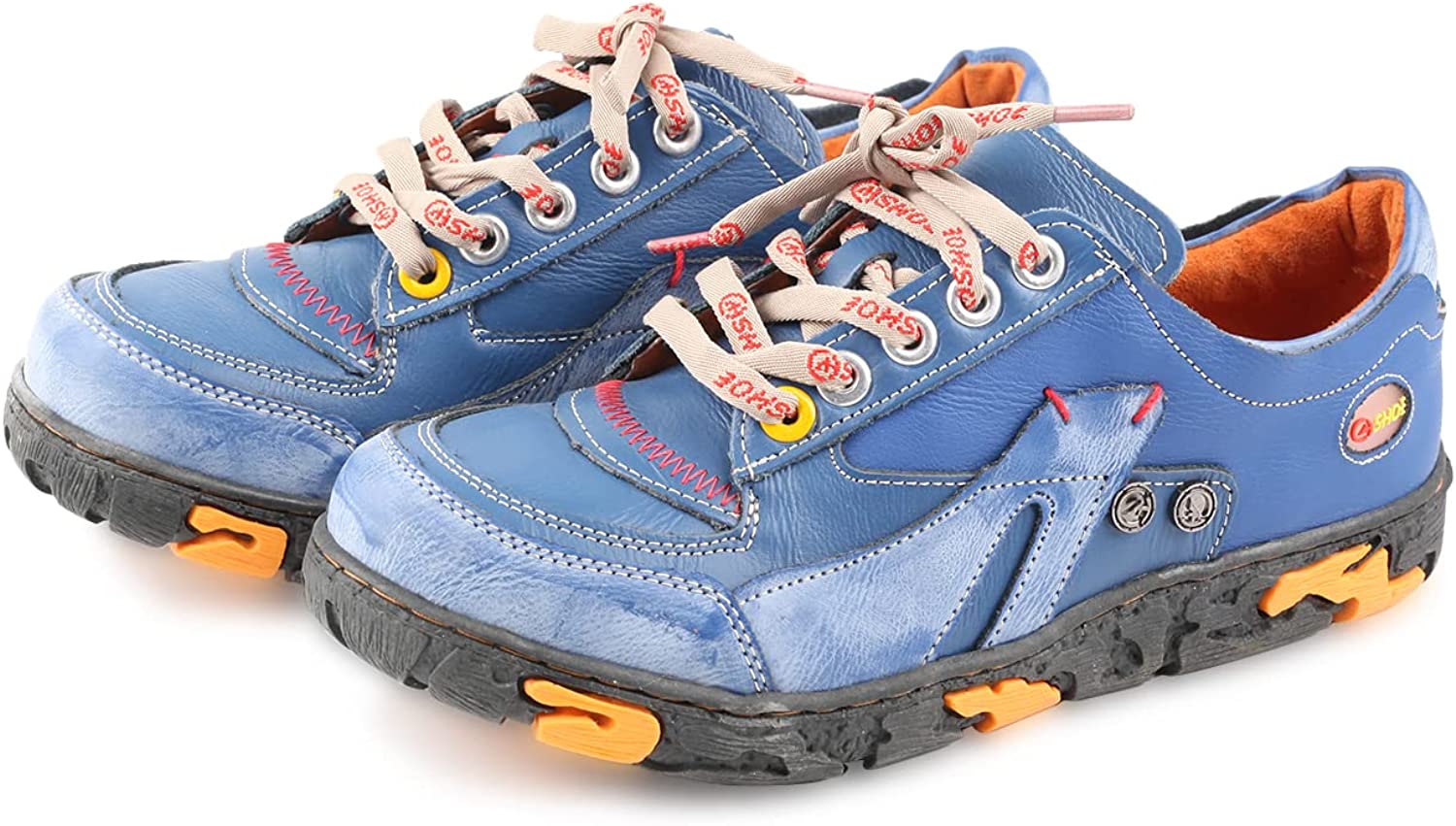 CHSHOER Women's Leather Patchwork Shoes Lace-Up Casual Shoes