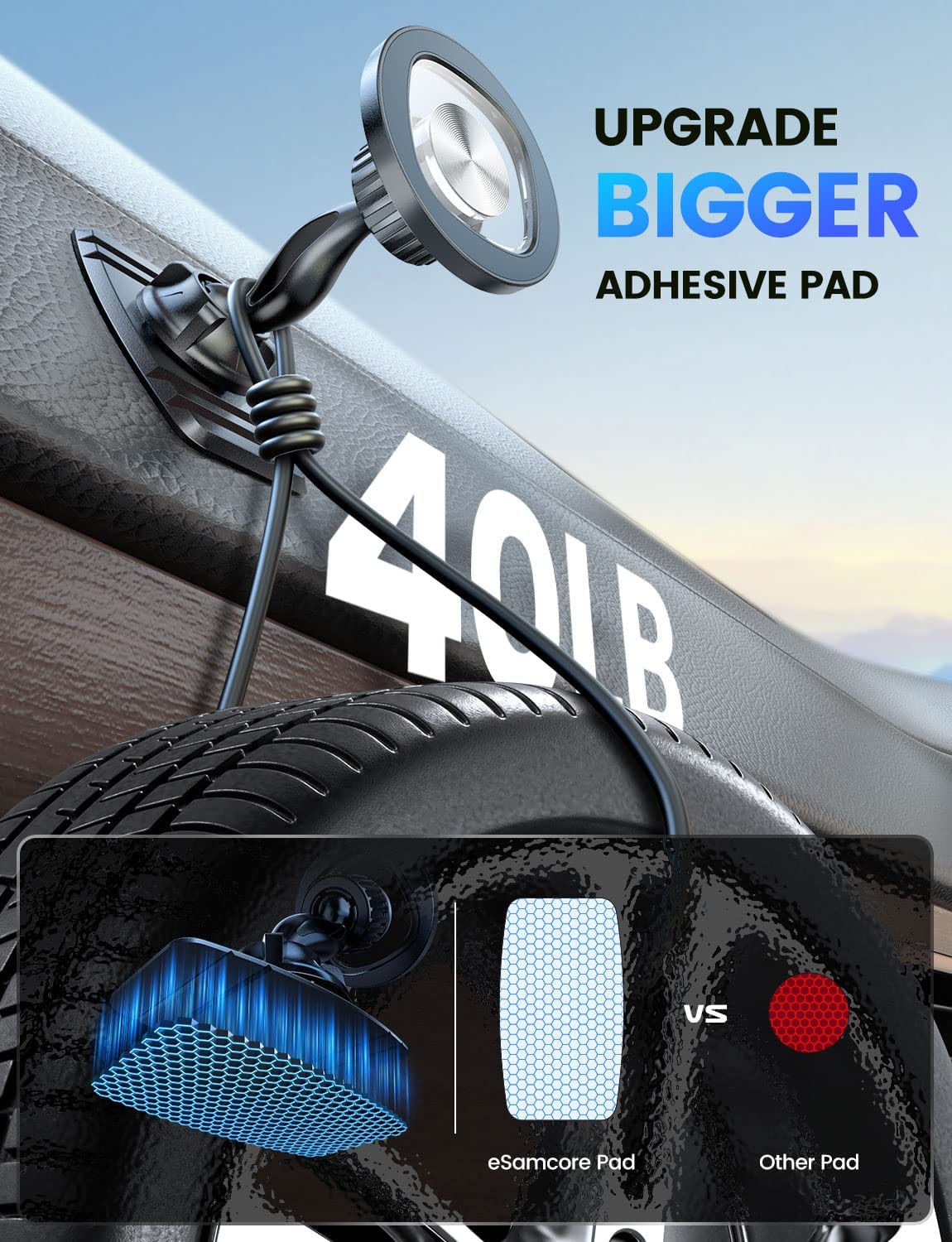 • ?【Bigger Adhesive Pad】: In 2022, we upgraded the base of car cell phone holder to a larger size. The size of the adhesive pad on phone car mount was increased to 1.51 X 2.71 inch. Larger adhesive pad makes magnetic car mount more stable.