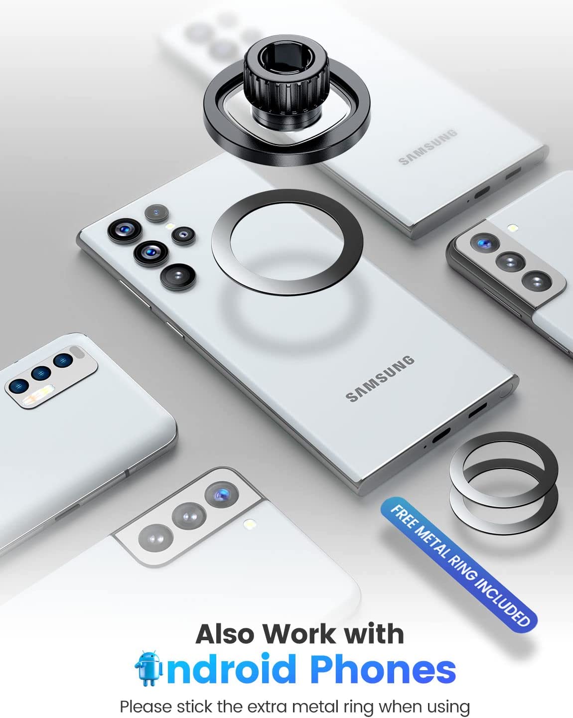 • ?【Also Works for Other Non-MagSafe Phones】:If you have a non-magsafe android cell phone or iPhone 11/ 12 Series, please don't worry, just stick the extra metal ring on the phone or phone case to get strong magnetic power. Moreover, these including metal rings are compatible with wireless charging.