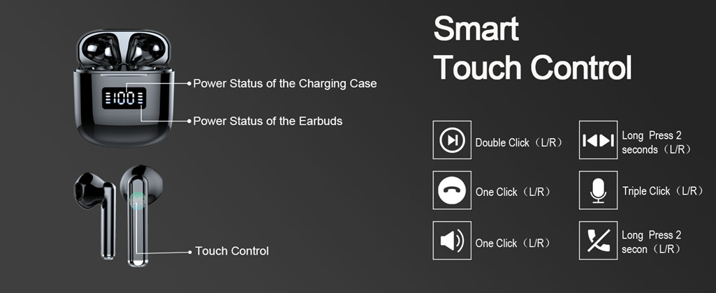 • USB-C Fast Charge and LED Power Display: With UCB-C quick charge, it only takes 1hr to charge the changing case. The bluetooth earbud can last 5 hours playtime from a single charge and provides extra 20 hours playtime with charging case. The digital portion of the LED screen indicates the percentage of how much the real-time battery has left of the charging case. You can precisely control the power status of the charging box. (Note: Please fully charge it for the first use.)