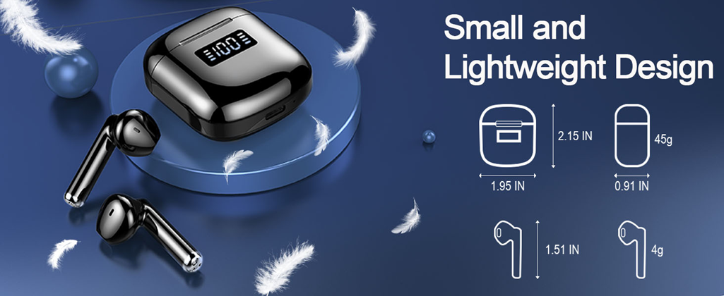 • Mini Ultra Lightweight and Ergonomic Design: Wireless earbuds are small, ultra-light and comfortable. Each earbud weighs only 4g, the ultra-light and ergonomic design allows you to wear them for a long time without feeling uncomfortable. Such a light weight will even make you ignore the earbuds in your ears. The size of the charging case is 2.15*1.95*0.91 inches, 0.1 lbs. Even if you carry out vigorous exercise with the charging case in your pocket, there will be no burden.