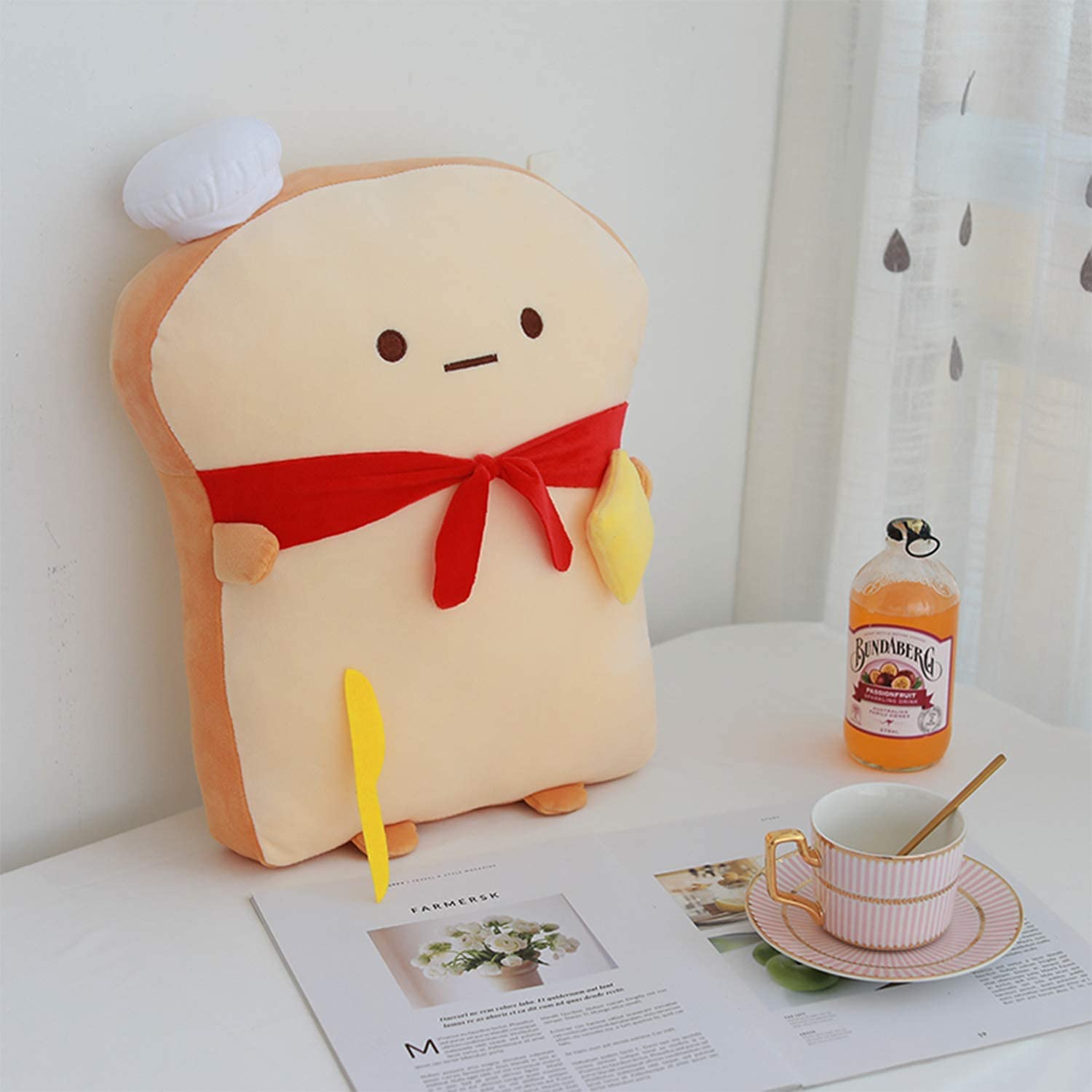 ARELUX Funny Toast Sliced Bread Pillow,Bread Shape Plush Hugging Pillow with Red Scarf,Soft Toast Food Sofa Cushion for Home Decor,Plush Toy Gifts for Kids Birthday(17.7'')
