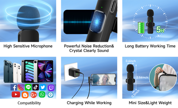 Compatible DevicesWireless Lavalier Microphone, PQRQP Wireless Lavalier Microphone, PQRQP Dual Wireless Lavalier Microphone, Wireless Microphone, Smartphone