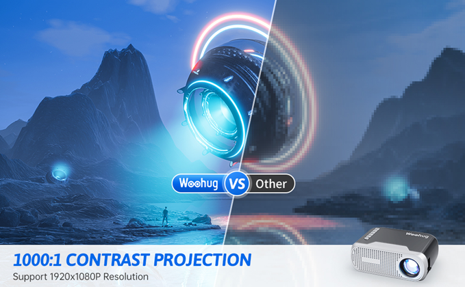 - Super Movie Projector Experience : The video projector upgraded in 2023, support full HD 1920x1080p highest resolution. 1000:1 contrast ratio, A real, dynamic and color vibrant HD projection image quality. It enables excellent playback of films, videos, games, photos, parties, and T-V programs and can be set up at your will.