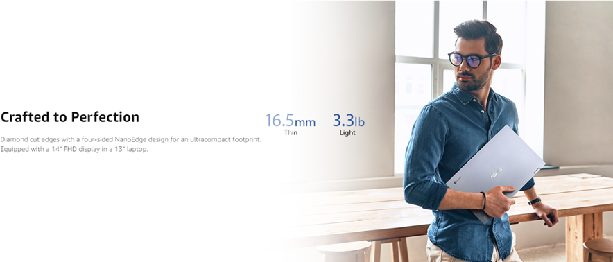 - 8GB LPDDR3 RAM; 64GB eMMC storage and 2x USB Type-C (Gen 1) and 1x Type-A (Gen 1) ports plus a backlit chiclet keyboard (*USB Transfer speed may vary. Learn more at ASUS website)