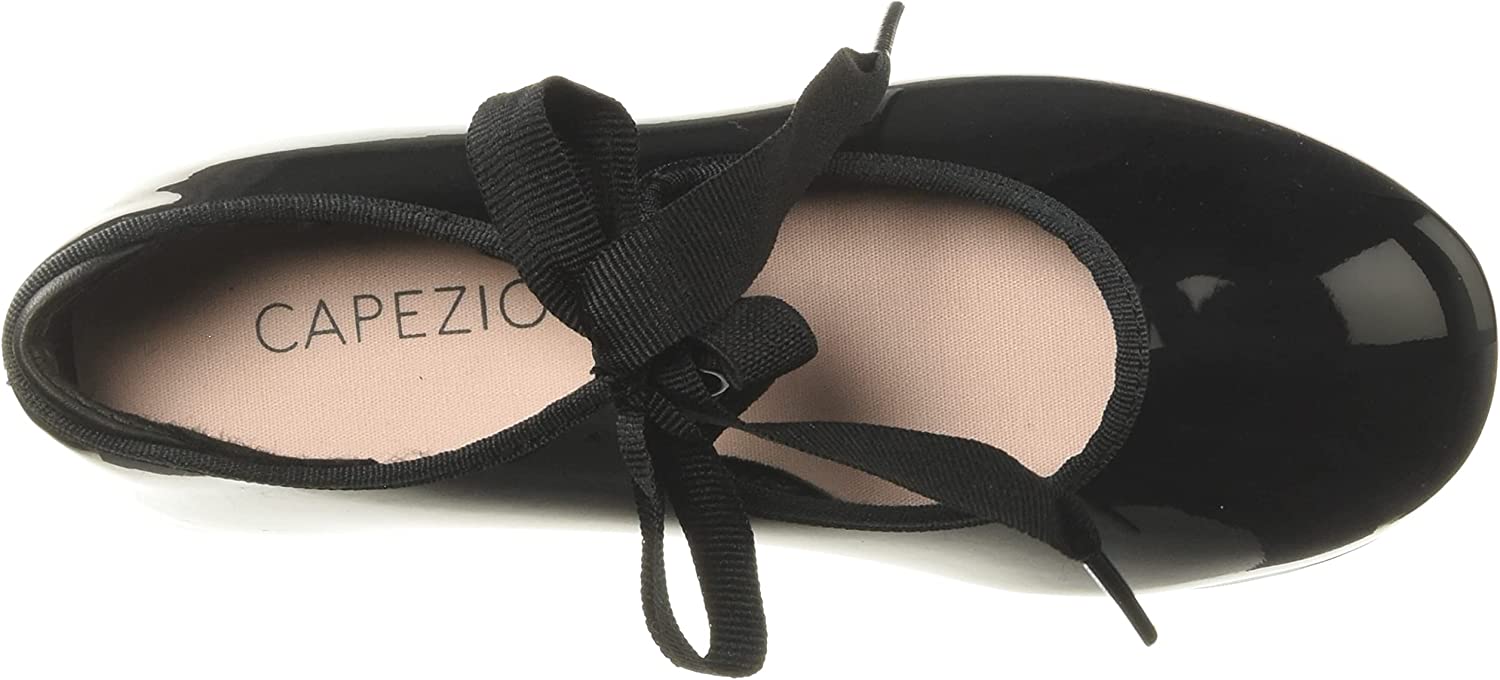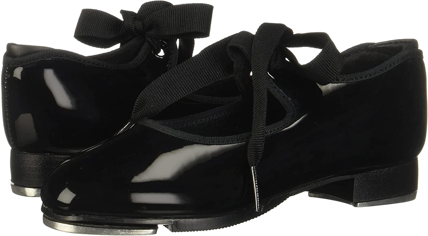 The Jr. Tyette tap shoe is the number one choice for a beginner tapper. Comes in shiny black patent leather, caramel PU leather or white PU leather. Adorable ribbon tie and star printed cotton lining will inspire your little dancer to have Broadway sized dreams. Features foam padded footbed, collar and Achilles notch for added comfort and security. Introductory tappers will take their first steps with confidence in the Jr. Tyette.