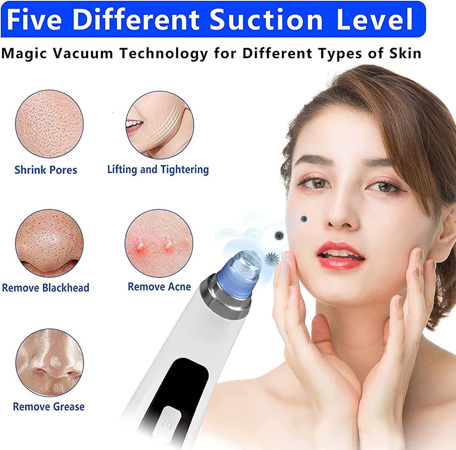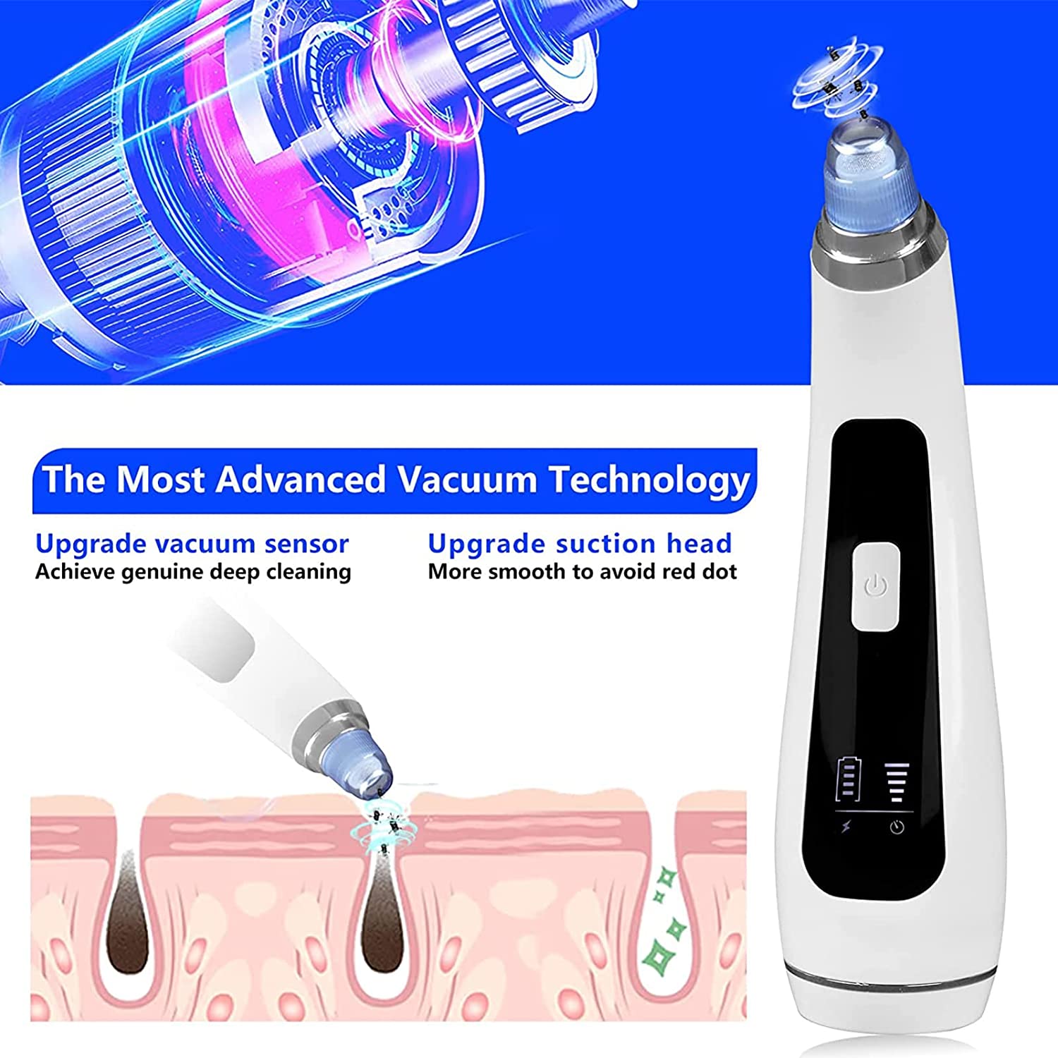 • 【4 Suction Probes & 5 Suction Levels】 4 replaceable probes designed to remove blackheads for various skin conditions use a multi-faceted way to help acne-prone users achieve smoother skin. Made of eco-friendly material ABS, safe to use on the face. Meanwhile, 5 different suction levels (58-65KPA) are used to satisfy the deep cleansing needs of different skin types (sensitive, dry, normal, combination, oily skin).