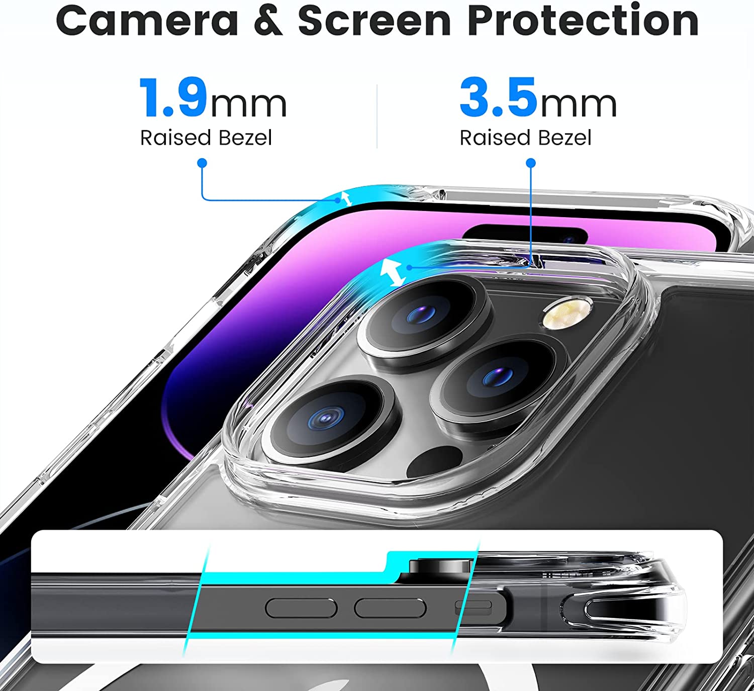 - [Military Grade Drop Protection]:There are camera lens protective lips raised 3.53mm on the back that prevent the screen and camera from drops & scratches and provide extra careful protection