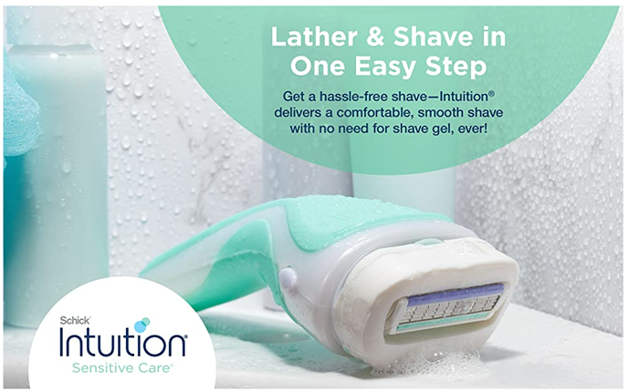 • NO NEED FOR SHAVING CREAM or SHAVING GEL — Lather and shave in one easy step with the Schick Intuition Sensitive Care Razor