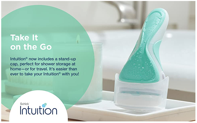 The Schick Intuition Sensitive Care women’s razor lathers and shaves in one easy step, with no need for shave gel! Our sensitive skin razor features a built-in moisturizing bar made with natural fragrances and organic aloe. The gentle Sensitive Care formula is dermatologist tested, vegan and hypoallergenic, making it great for sensitive skin. Intuition’s smooth-gliding 4-blade cartridge has a pivoting head to hug the contours of your legs and body. A stand-up cap is included for easy shower storage. Plus, the Schick Intuition Razor is perfect for first-time shavers, minimizing nicks and cuts.