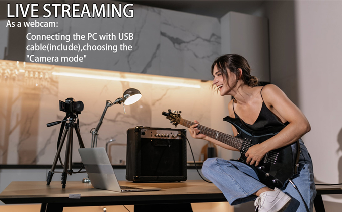 - ?Youtube Camera as Webcam ?: This 4k camera can be used as a webcam just by connecting the PC with USB cable, choosing the "Camera mode", and the vlogging camera with flip screen, equipped with a 3.5mm jack for external microphone to clear audio recording, a hot shoe can connect an external photo lighting, supports external 1/4 standard size tripod. Make it easy to enjoy video chatting on Skype, or live streaming on social media such as Facebook and Tiktok.