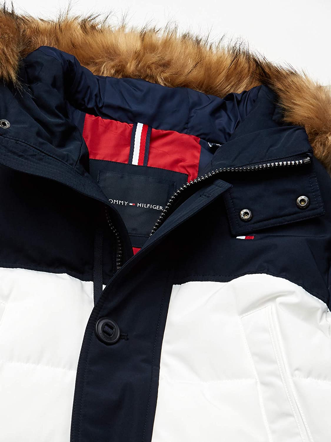 - Rib knit storm cuff details, rib knit detail on waist, and signature tommy embroidered flag at chest and tommy logo patch on arm