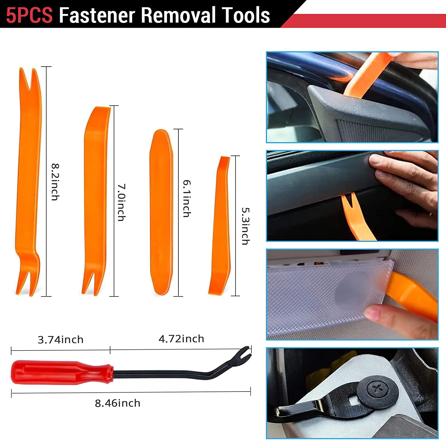 【Ergonomic Design】- Our auto trim tool set and trim auto clips adopts ergonomic design with super lightweight,easy handheld features which effectively effort saving for various interior and exterior car trimming in the shortest time.