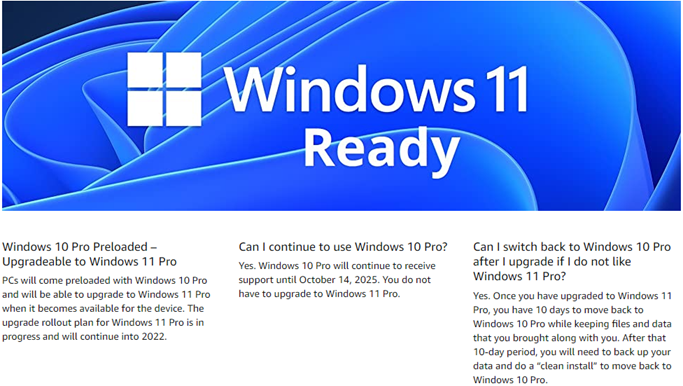 Operating System: Windows 10 Pro 64 Bit *Windows 11 Ready* (Windows 10 Pro preloaded, will be able to upgrade to Windows 11 Pro)
