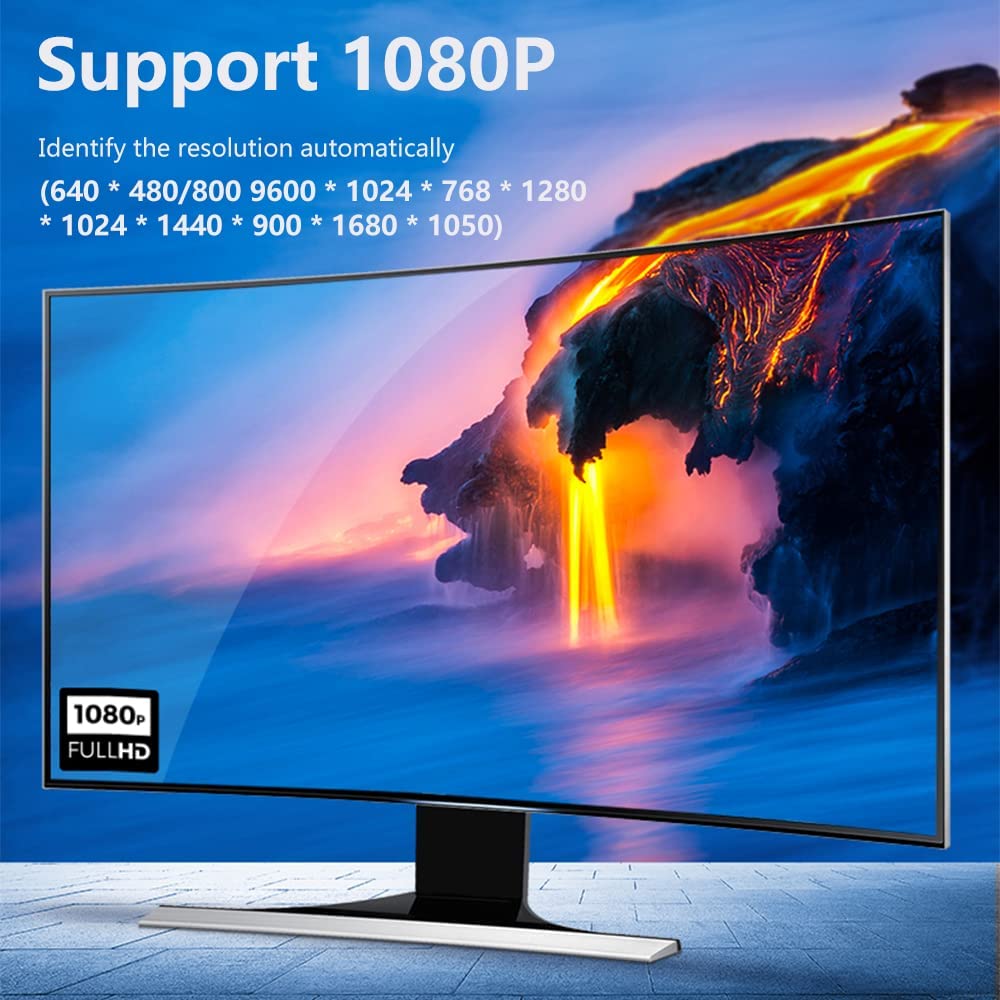 • 【Good Compatibility】Identify the resolution automatically (640 * 480/800 9600 * 1024 * 768 * 1280 * 1024 * 1440 * 900 * 1680 * 1050), it has good compatibility with monitors.