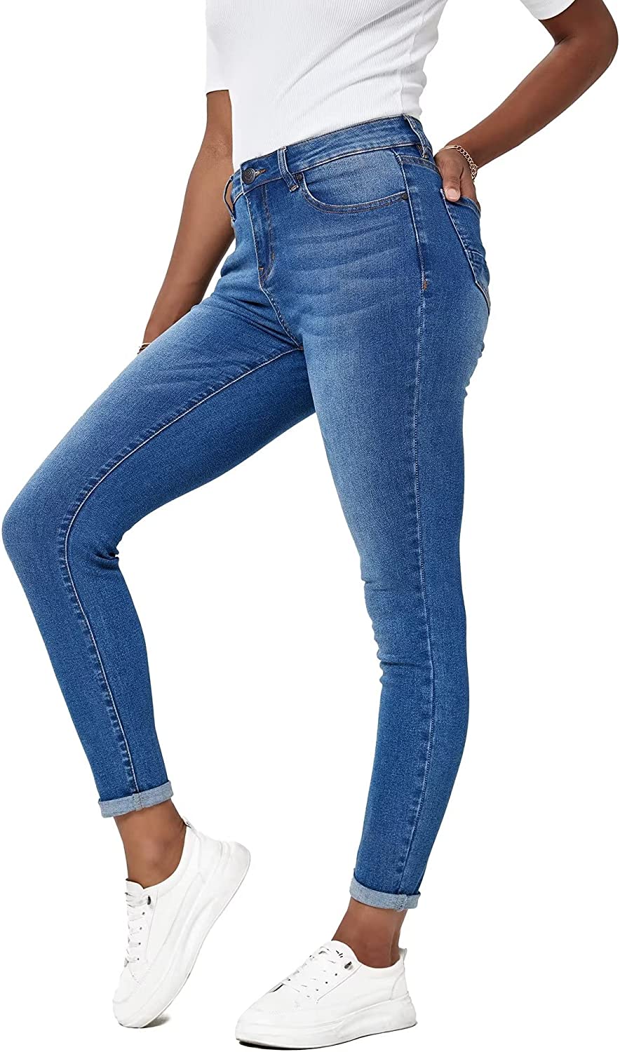 RHODANTHE Women's Ripped Skinny Jeans Stretch Boyfriend Trendy Jean Women Straight Distressed Jeans