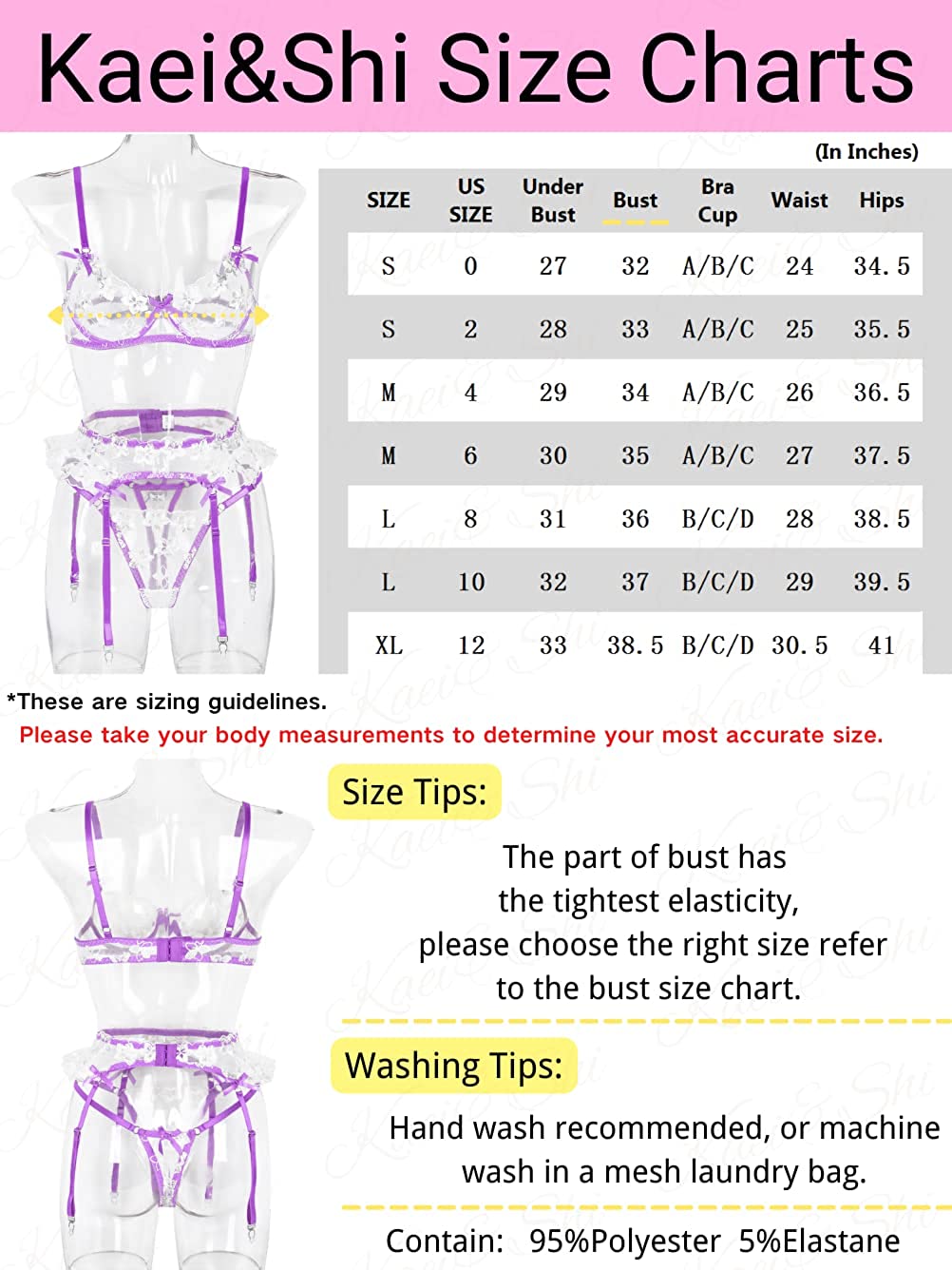 ✿Feature: This matching bra and panty set features with spaghetti strap, scalloped edge, garter belt, sheer mesh to show your curve beautifully.