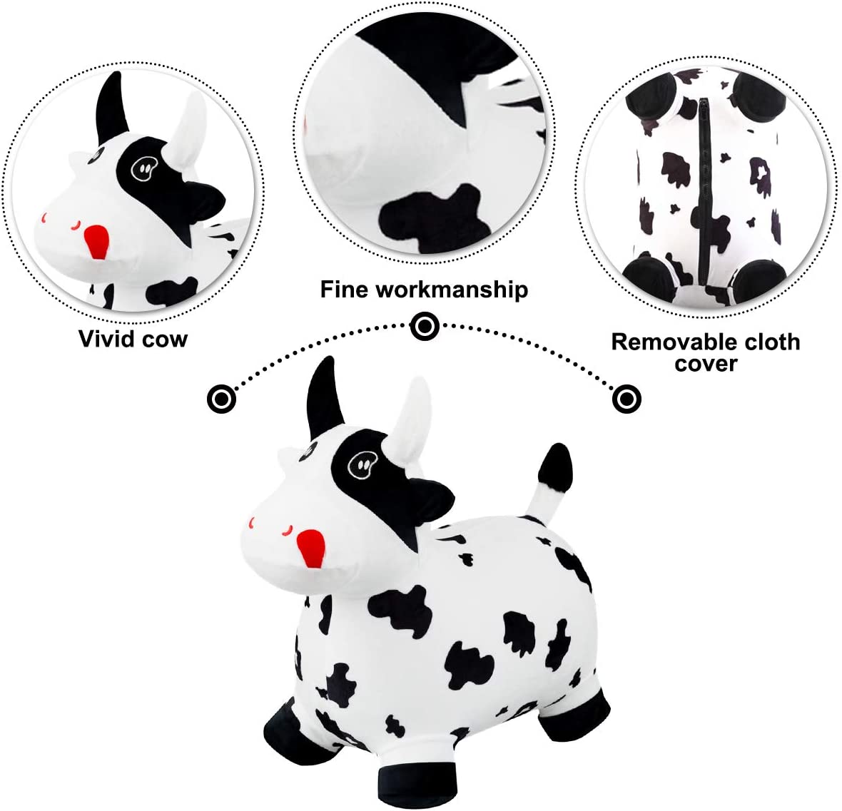 - ECO-FRIENDLY AND SAFE: Our bouncy cow are Phthalates, lead, BPA, and heavy metal-free, making them safe for your child to use. They have been tested for compliance with the ASTM F963-11 Toy Safety Standards, so you can trust that your child is safe while using our animal hopper.