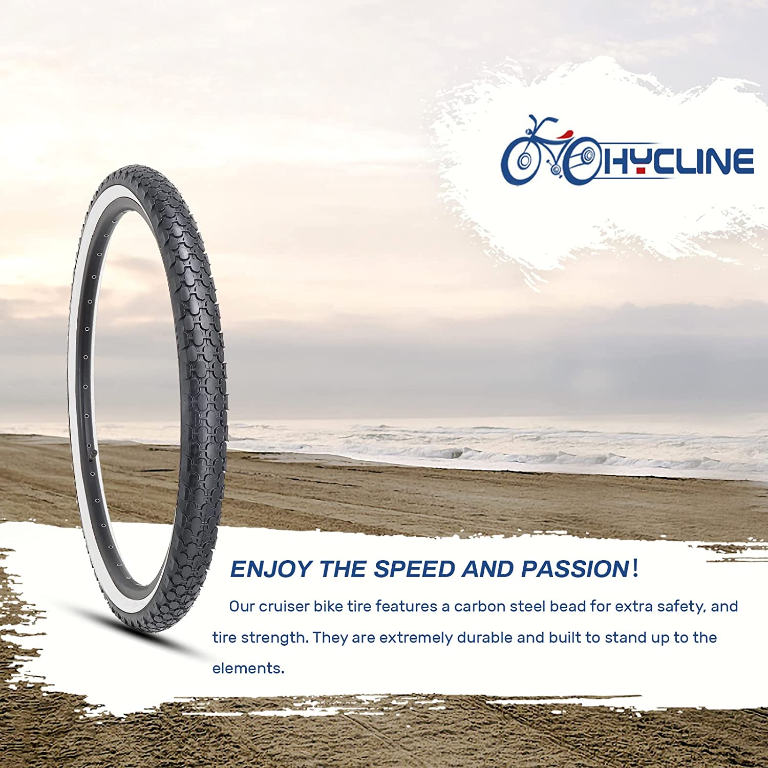 Hycline 26" Cruiser Bike Tire with Flat Protection is a smart choice for anyone who owns a compatible bike. Flat Protection technology provides a protective layer with increased strength and extra puncture resistance. Our cruiser bike tire features a carbon steel bead for extra safety, and tire strength. They are extremely durable and built to stand up to the elements.