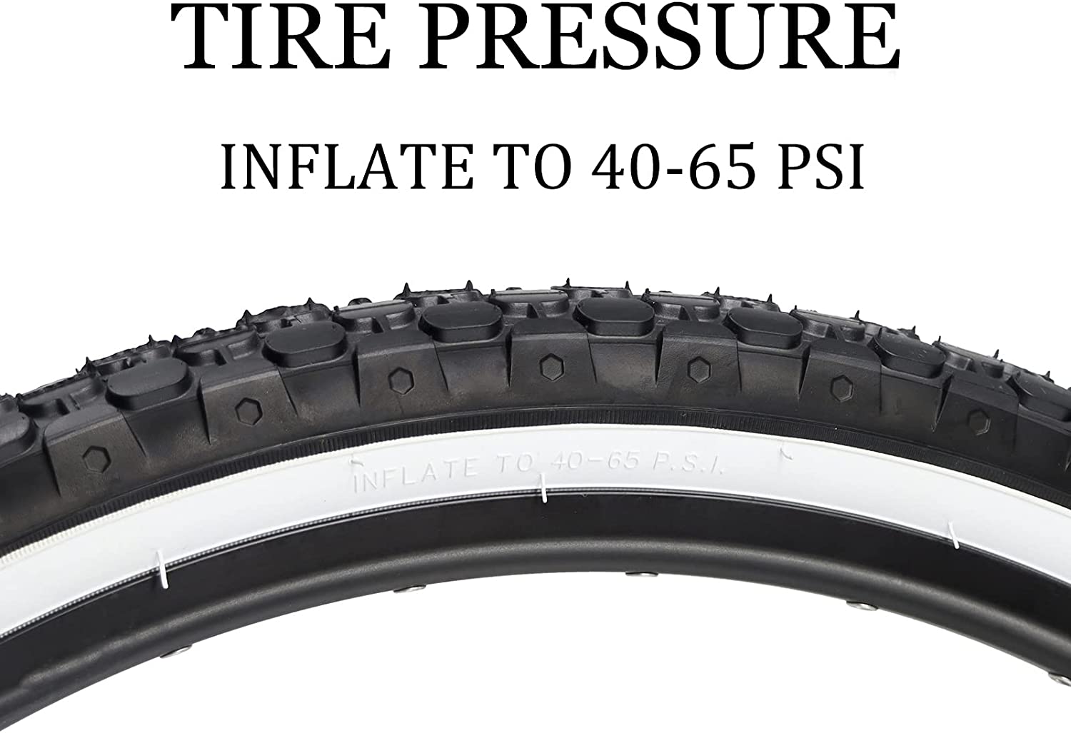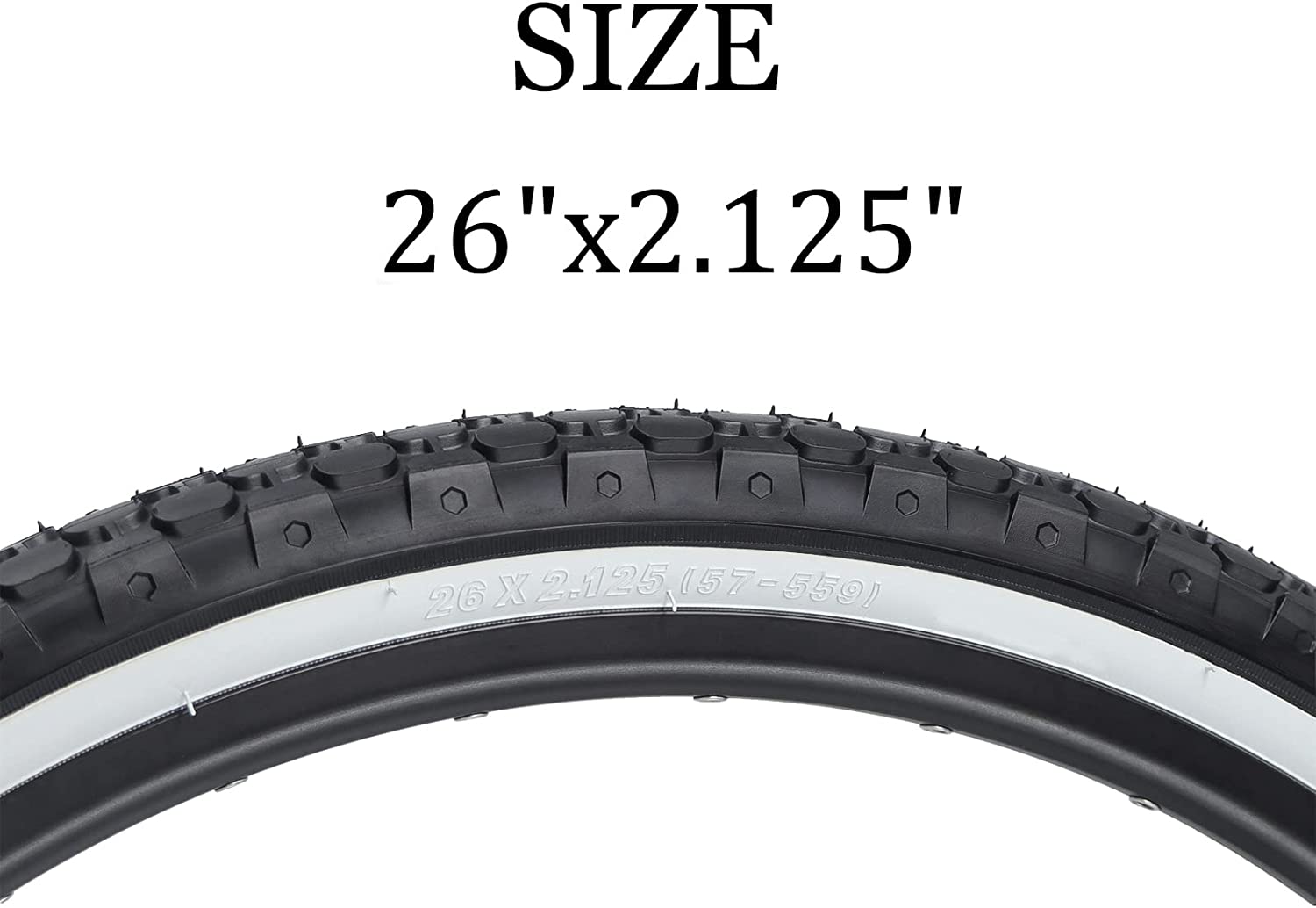 • Tire size: 26" x 2. 125";Color:White;PSI Range: 40-65;ETRTO: 57-559