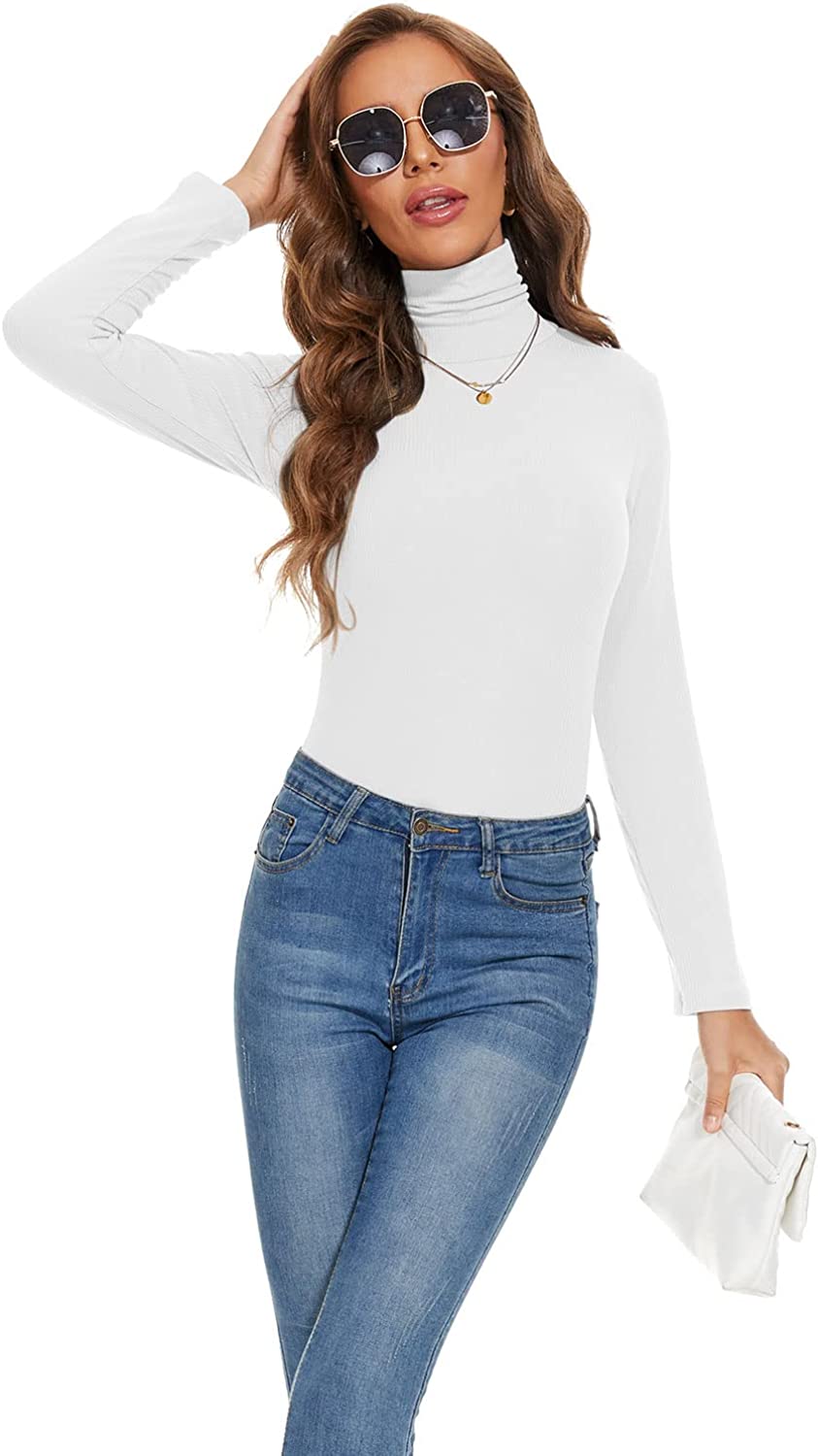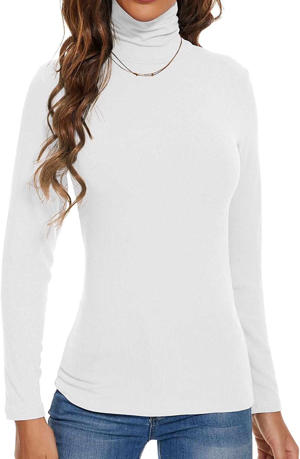 LaikaKud Women Mock Turtleneck Long Sleeve Shirt Pullover High Neck Undershirt Ribbed Thermal Shirts