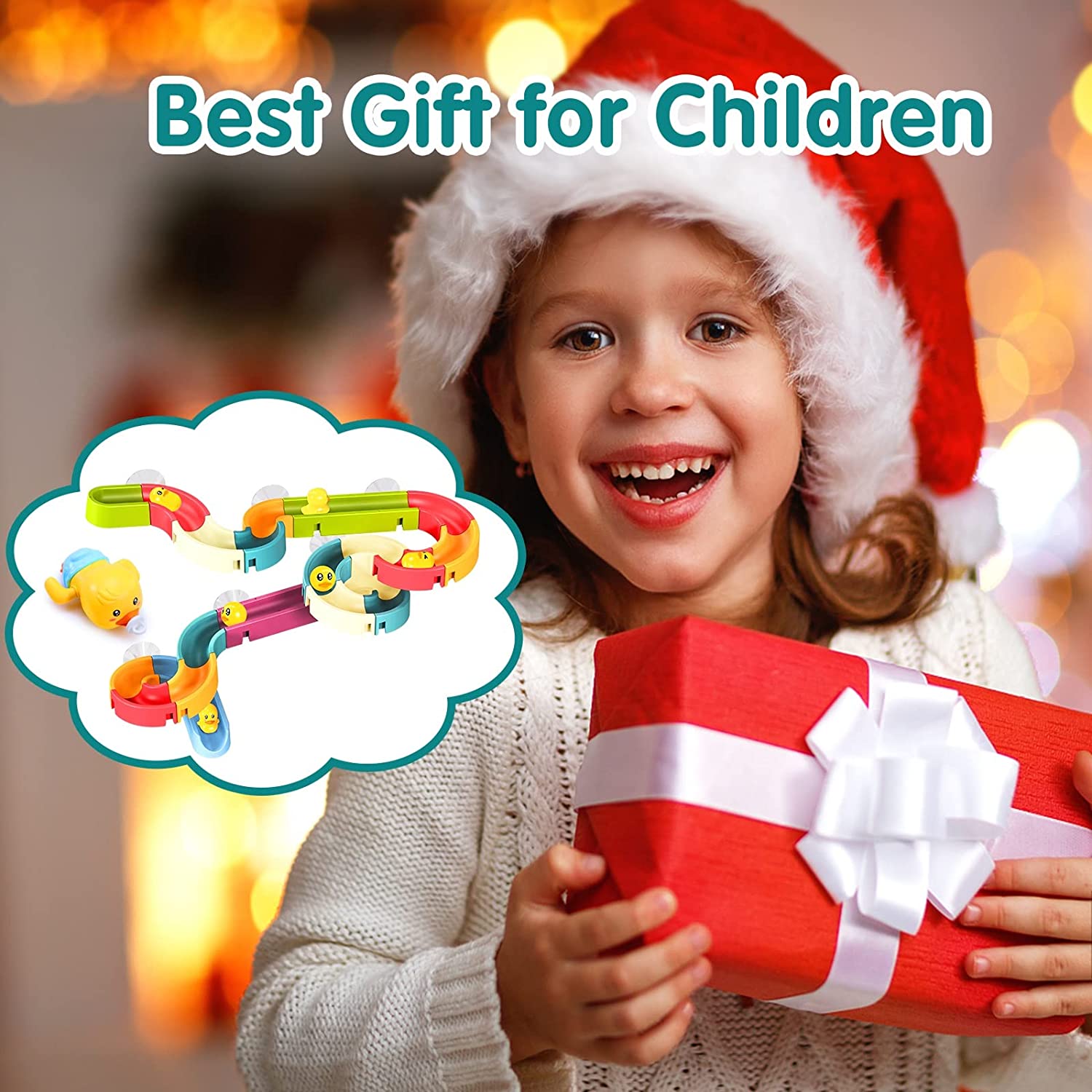 【Fun Bath Toy Track Game】This bathtub bath water track toy contains a total of 35 bath accessories, 20 * colored track pieces (random colors), 8 * suction cups, 1 * wind-up bath duck, 6 * mini duck toys. Kids can create a fun DIY bath toys, our baby bathtub toys provide all-round protection for your child, it is an excellent toy for your little one. Bath time becomes more enjoyable and faster!