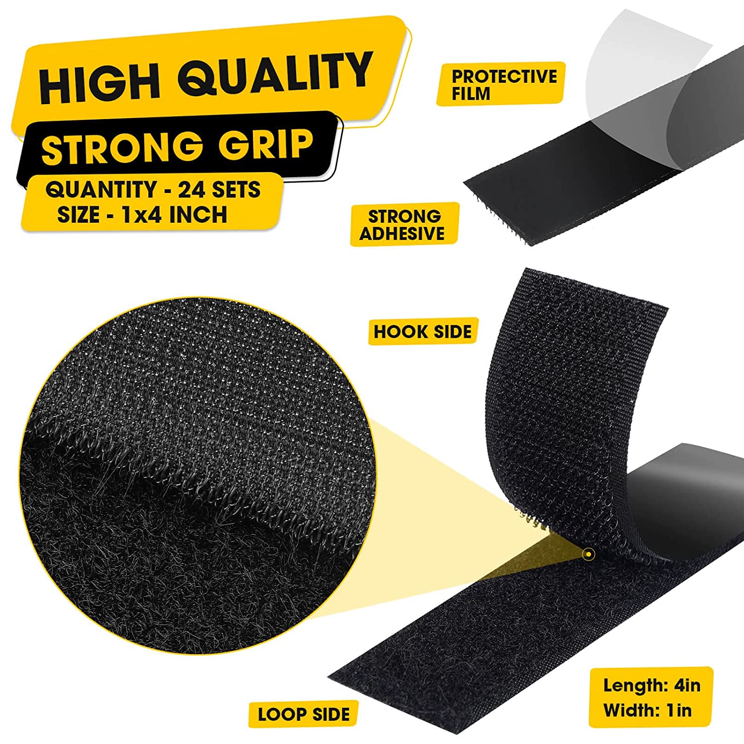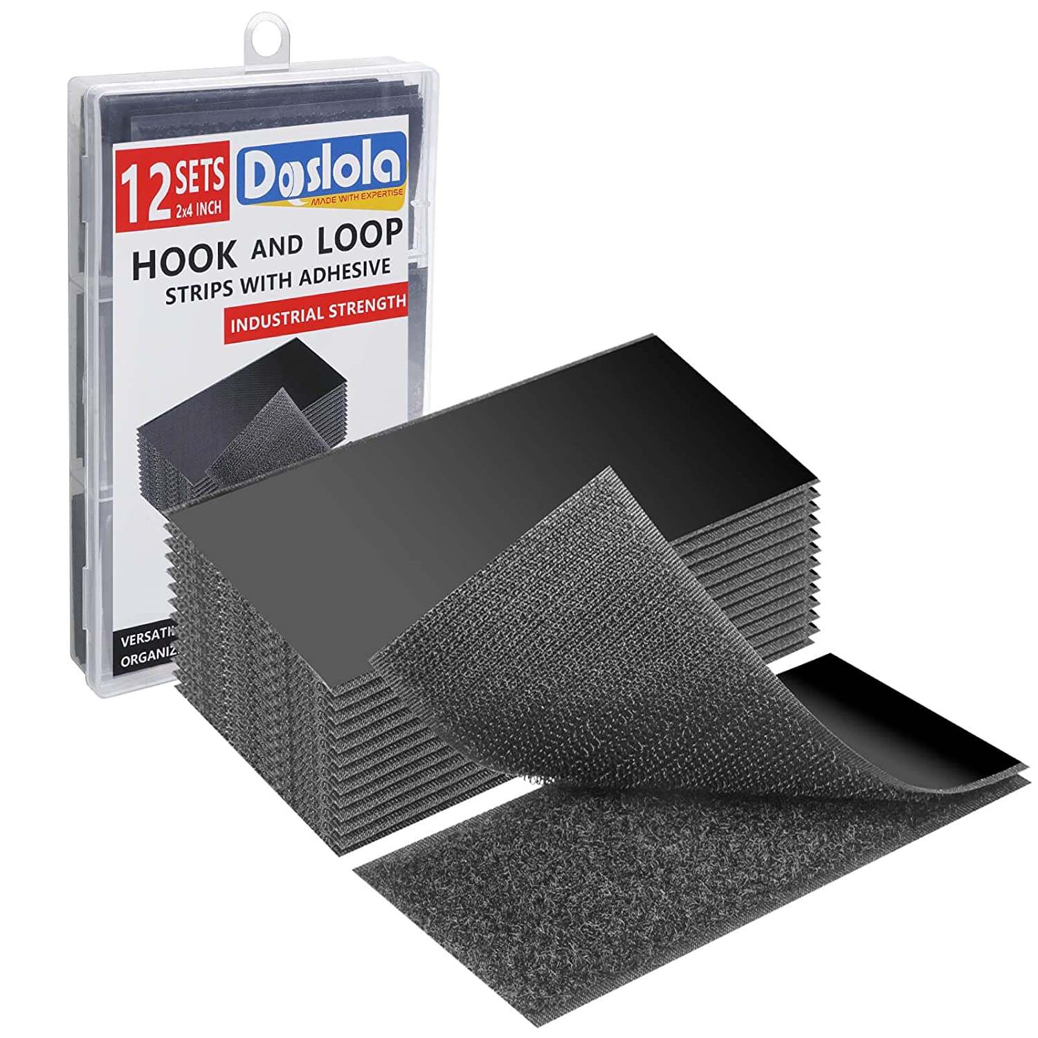 Doslola 12 Sets 2x4 Inch Hook and Loop Strips with Adhesive, Strong Back Adhesive Fasteners Mounting Tape for Home Office School Organization, Crafting, Home Improvement Decorating