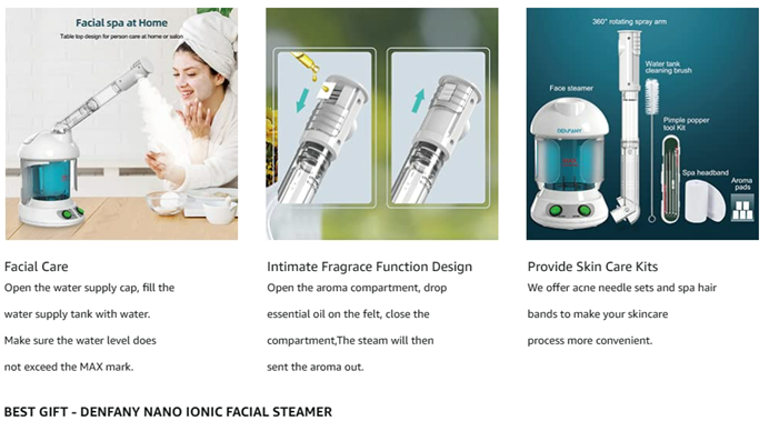 - 【10X More Effective for Penetrating Skin】: Nano Ionic steam supplement moisture effectively; Compared to ordinary steamers, DENFANY facial steamer adopts ionic vaporization technology, which can ionize and activate water molecules, and creates ultra-fine steam that is easily absorbed by the skin. A tank of water can be sprayed for not less than 35 minutes.