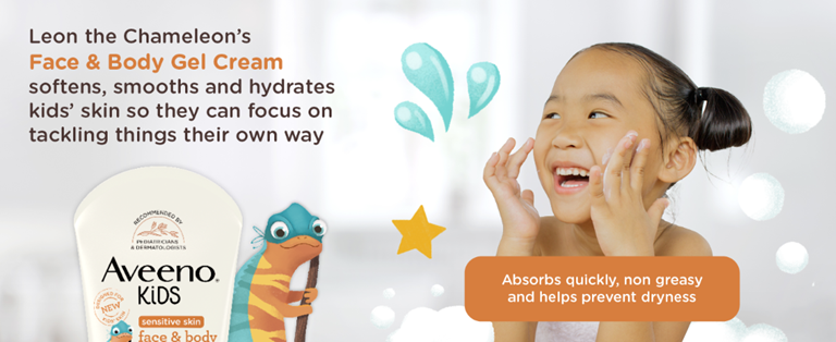 • From a pediatrician & dermatologist-recommended brand, the Sensitive Skin Face & Body Gel Cream makes a perfect addition to your kids' skincare routine; After use of your favorite Aveeno Kids products, apply to sensitive face & body skin as needed