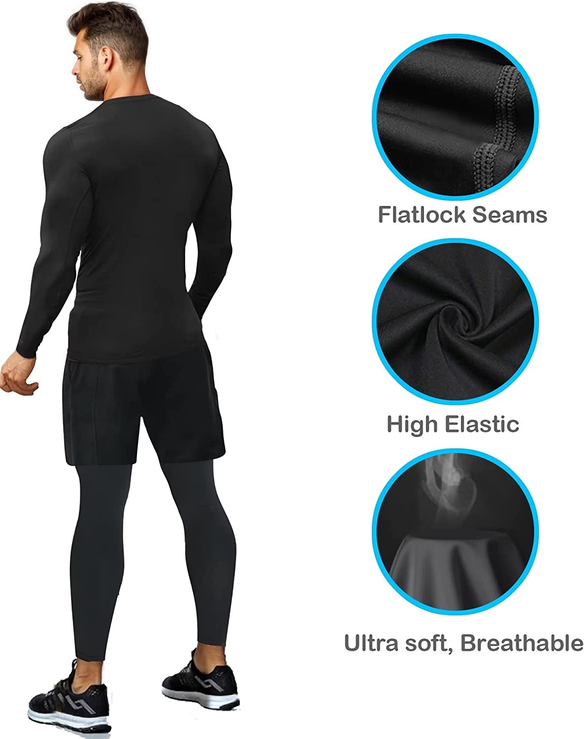 4/5 Pack Compression Shirts Men Short/Long Sleeve Athletic Cold Weather Baselayer Undershirt Gear Tshirt for Sports Workout