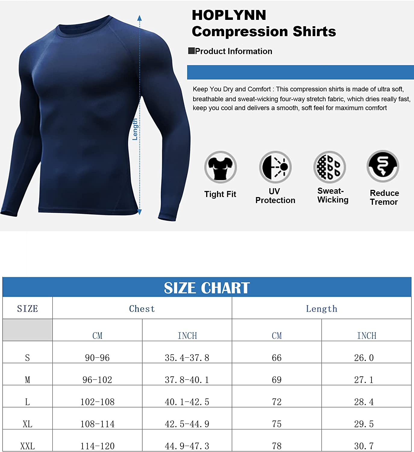 • Keep You Dry and Comfort : This workout compression shirts is made of ultra soft, breathable and sweat-wicking four-way stretch fabric, which dries really fast, keep you cool and delivers a smooth, soft feel for maximum comfort