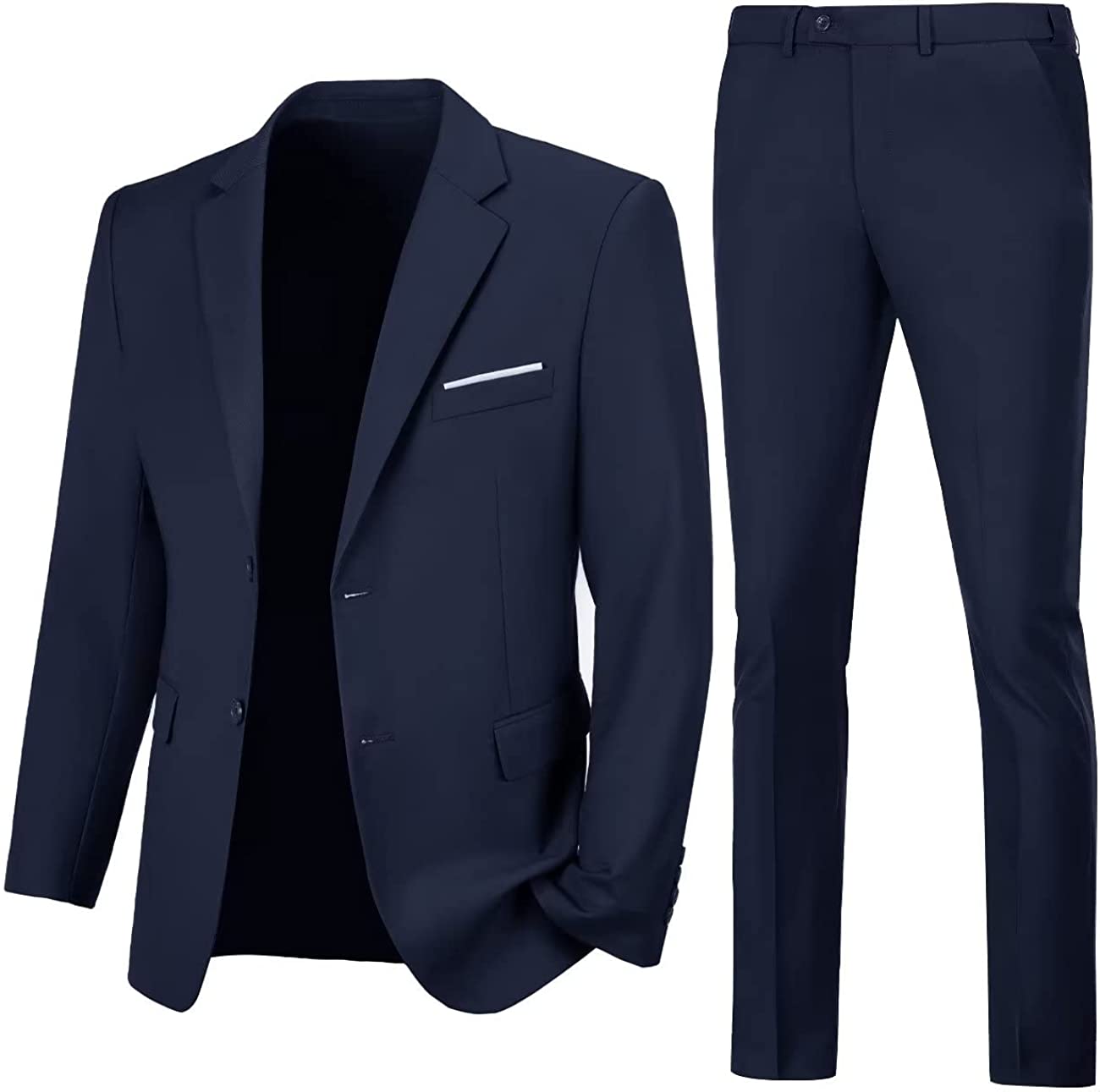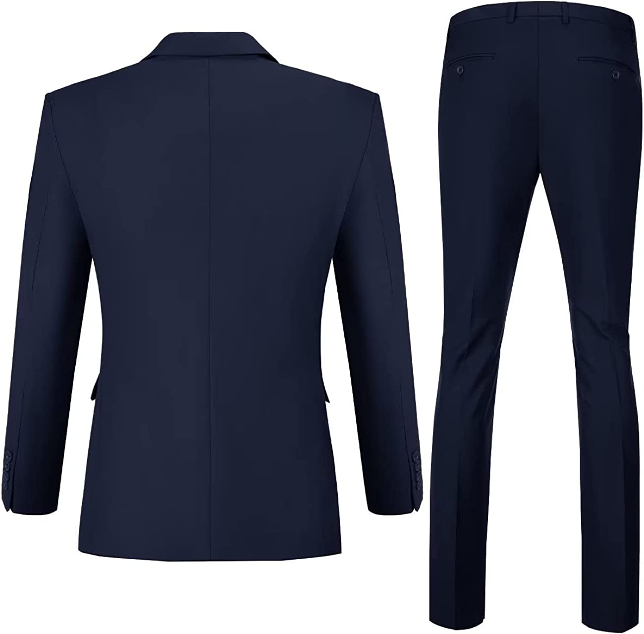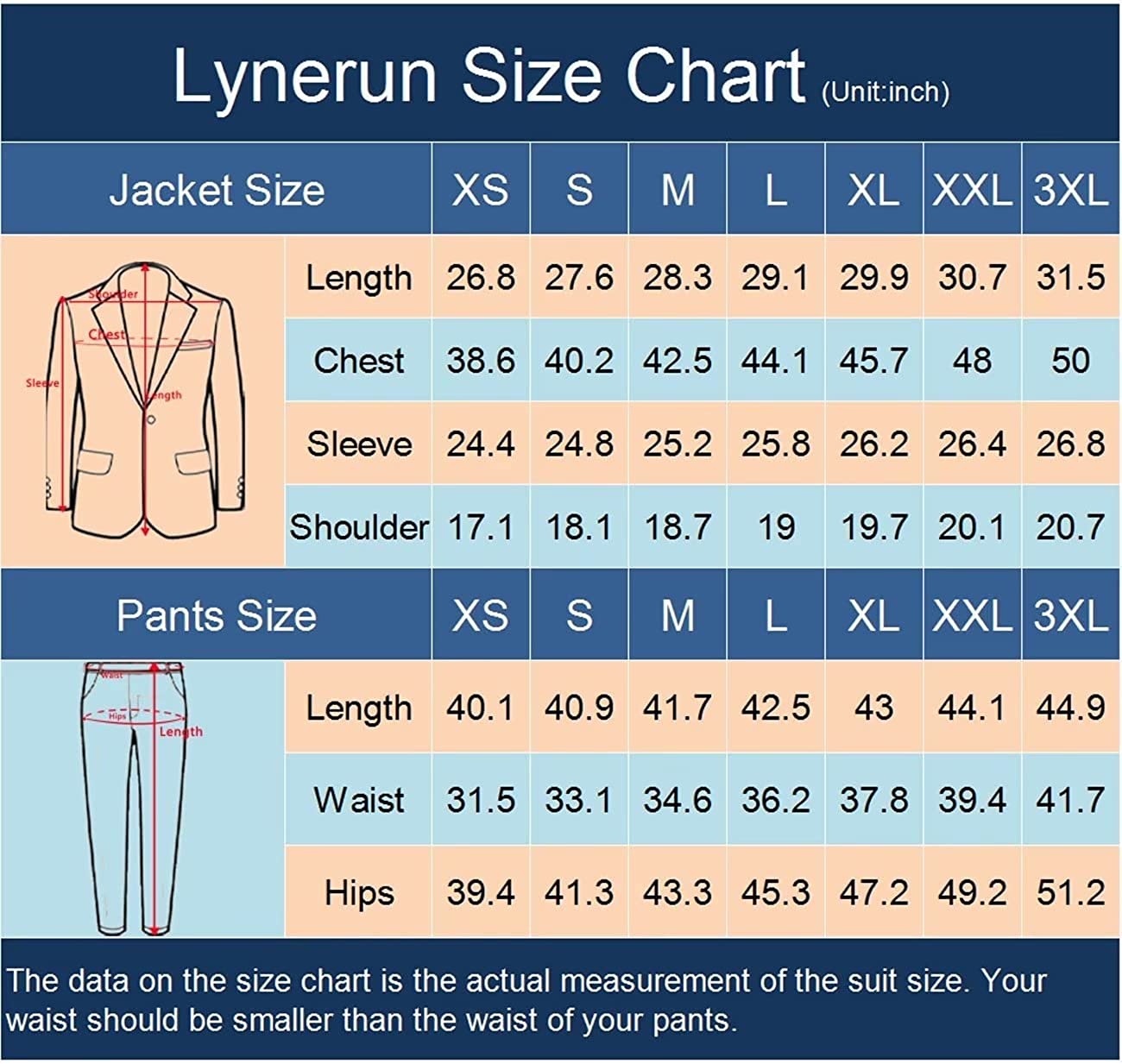 Lynerun Mens Slim Fit 2 Piece Suit Two Button Notched Lapel Solid Suit Jacket Pants Set Tuxedo for Prom