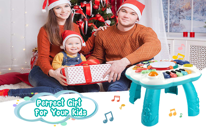 BACCOW Baby Toys 6 to 12-18 Months, Musical Activity Table for 1 Year Old Boys Girls Gifts, Toddler Infant Toys, Length 11.8 Inches Width 11.8 Inches Height 12.2 Inches