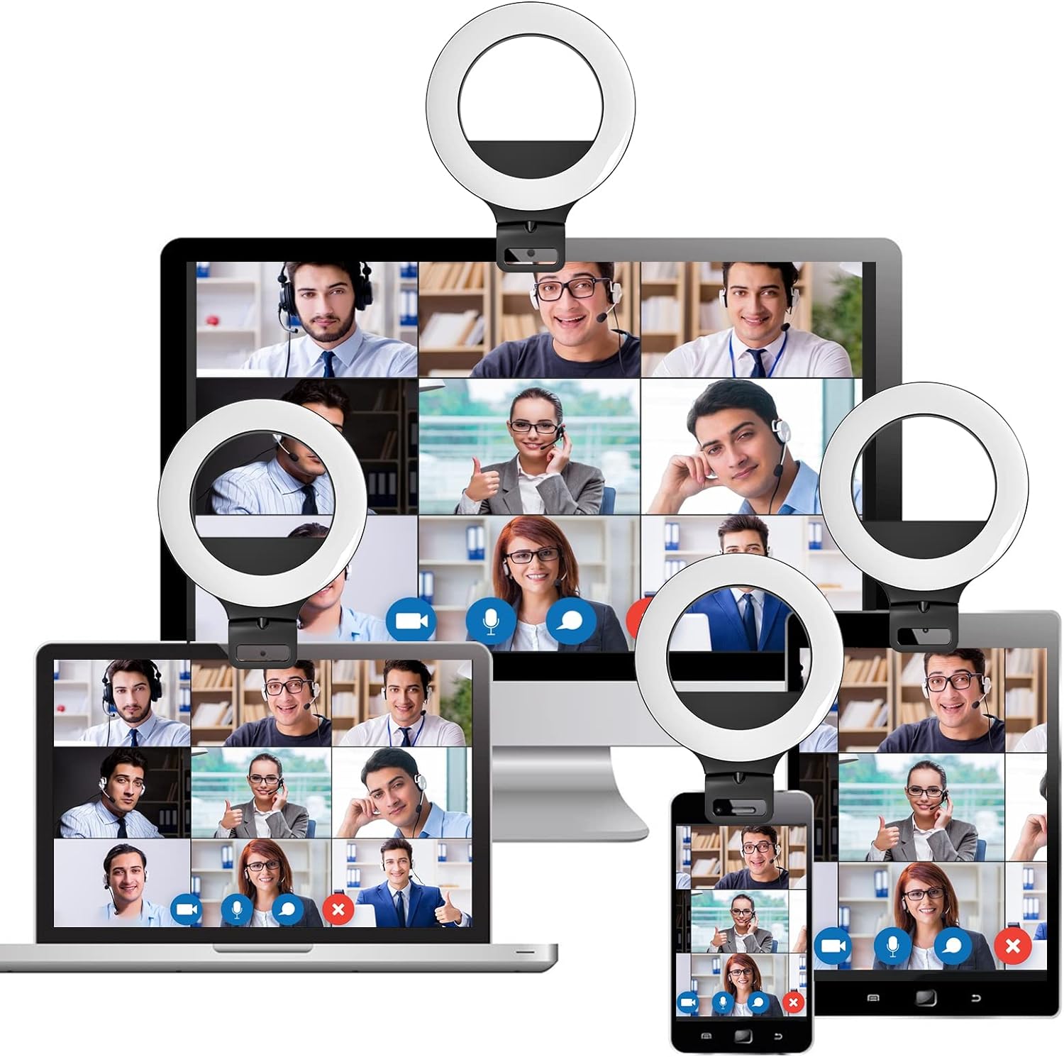 【Secure and Convenient】: The computer ring light features a sturdy clip that attaches easily to the device, and silicone padding that protects your screen from scratches. Take your video conferencing light wherever you go for professional-quality lighting on the go.