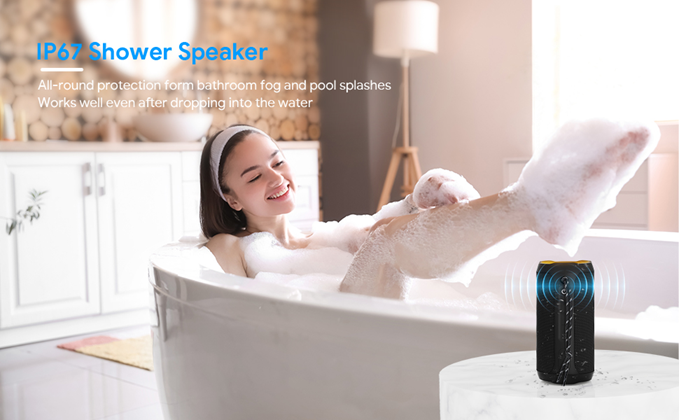 • ?‍♂️?????? ?? ??? ??: IP67 dustproof and waterproof speaker weights only 440g, making this portable speaker perfect for outdoor, hiking, beach and even as waterproof shower speaker. The built-in mic provides high quality and convenient hands-free call