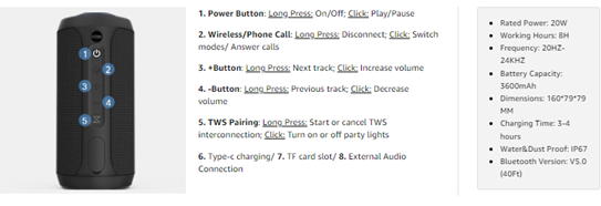 • ????????? ??????: 20W loud bluetooth speakers cover a wide frequency range of 20-20K Hz with deep bass, accurate mids and crisp highs even at full volume