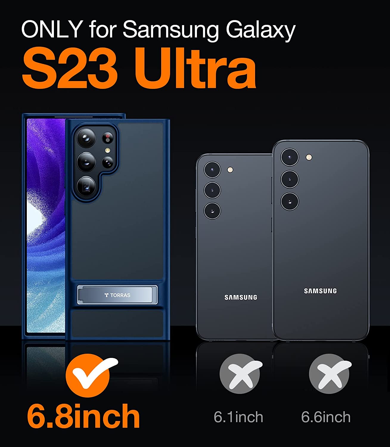 - [Hands-Free. Hassle-Free] TORRAS classic MarsClimber S23 ultra case is designed with a 3-way kickstand, which is free adjusted at 0-52° with self-locking stiffness. Without neck/wrist pain caused by unergonomic angles, you could always find a comfortable mode for watching, working, and video-calling via using the Galaxy S23 ultra case with stand