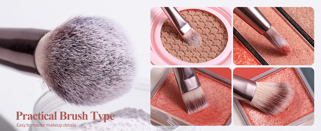 • PREMIUM SYNTHETIC FIBER: The handles of cosmetic brushes are made of high-end alloy and wood material. The bristles are well made of soft and silky nylon, ensured for long time use. All the brushes are fine and dense, suitable for even the most sensitive skin.